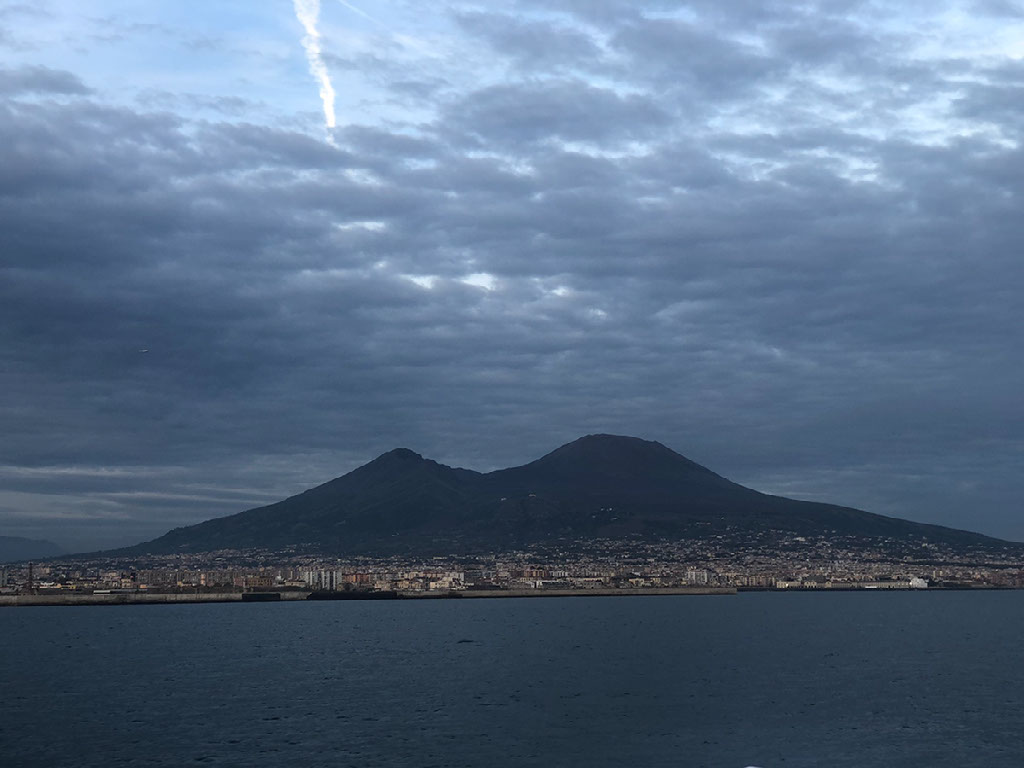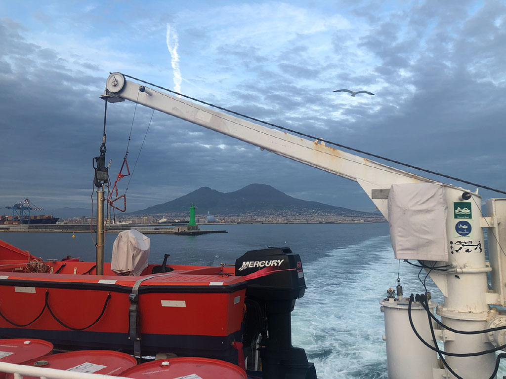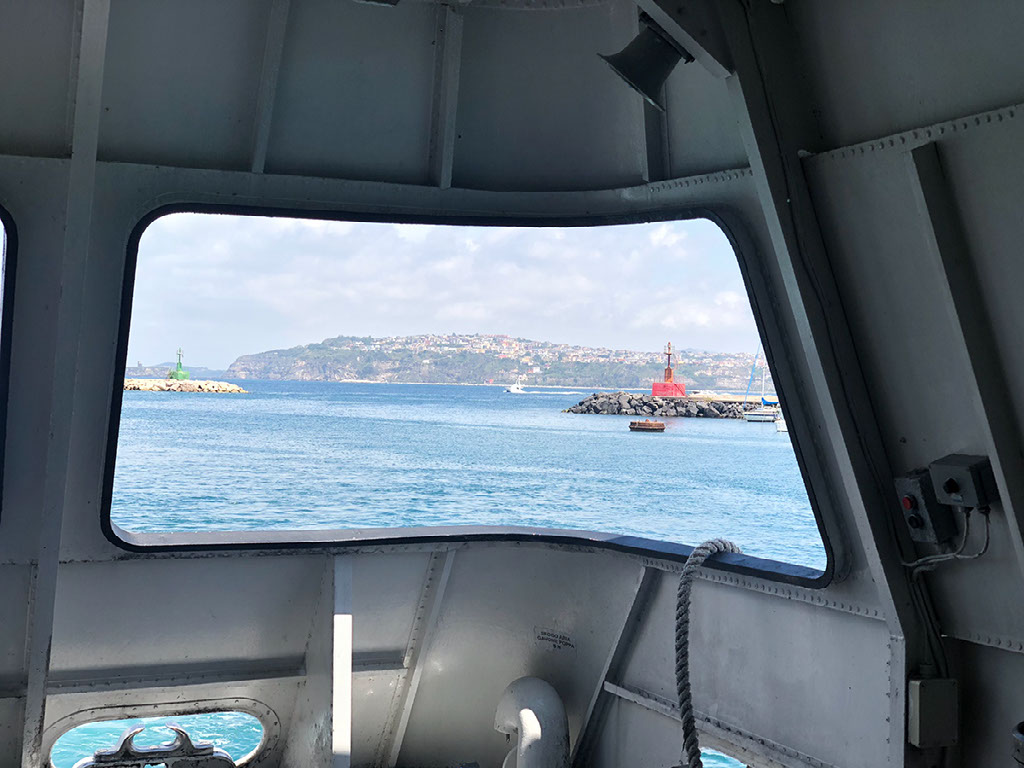 There are two outdoor bits, just small areas out the back, one on each side. It’s very loud and windy and the trip is fairly bouncy, which I find great fun rather than perilous. The coastline of suburban Naples as we head out look pretty nice.