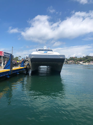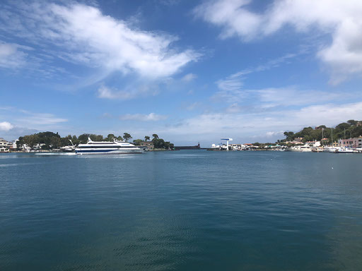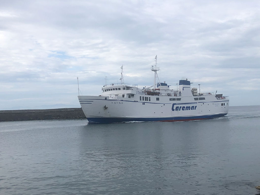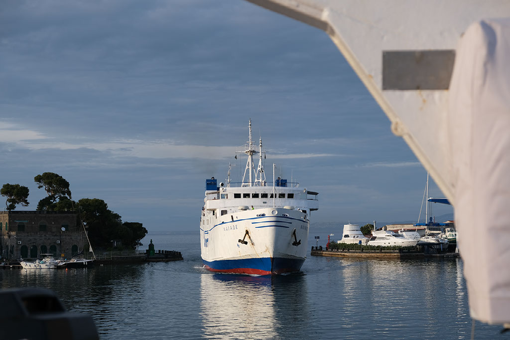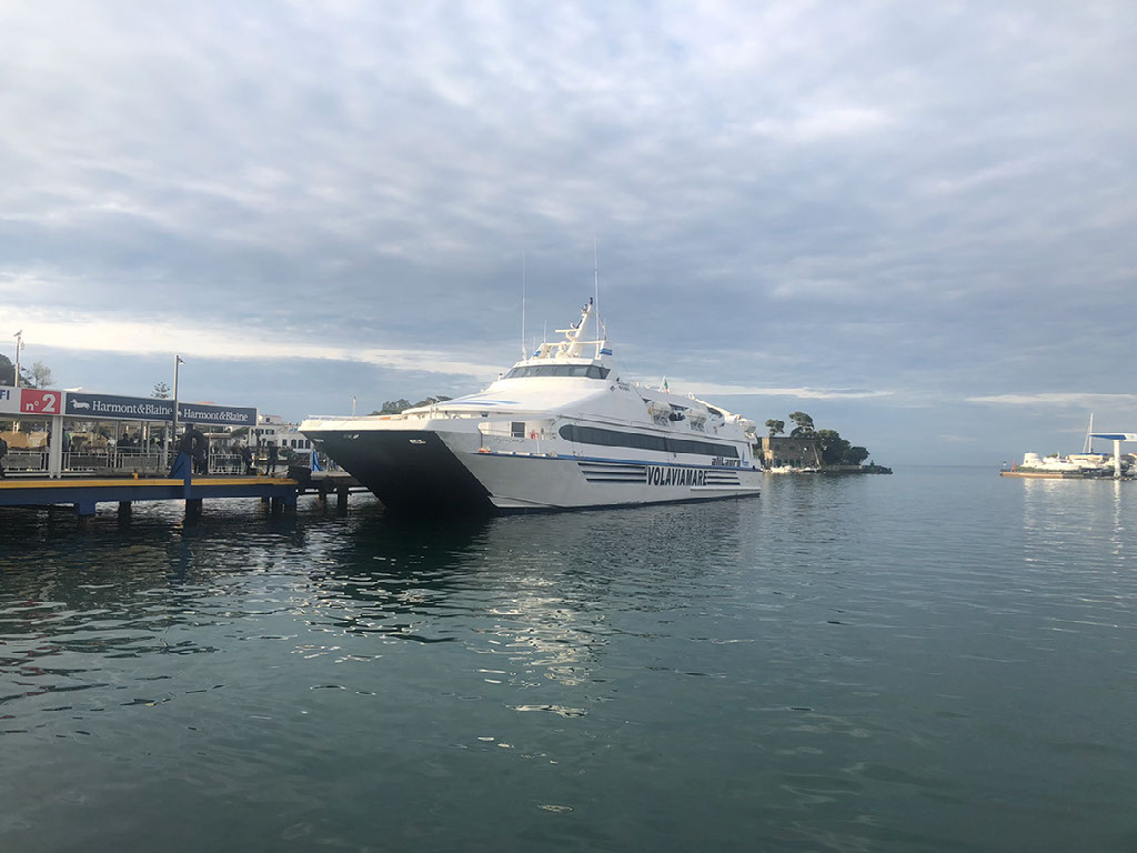 There is no ticket office. It looks like a giant cruise ship terminal, because it is a giant cruise ship terminal, but we haven’t seen any boats any smaller. It’s mostly deserted with no useful signage. A man in a souvenir shop tells us the boat we want is outside and 500 metres to the left but somehow we still can’t even see that. With all this faffing it’s now about 1142 so we’ve obviously screwed up, and walk back to the earlier office for the 1230 anyway… and then, over there on the left, we spot the 1145. Andiamo!