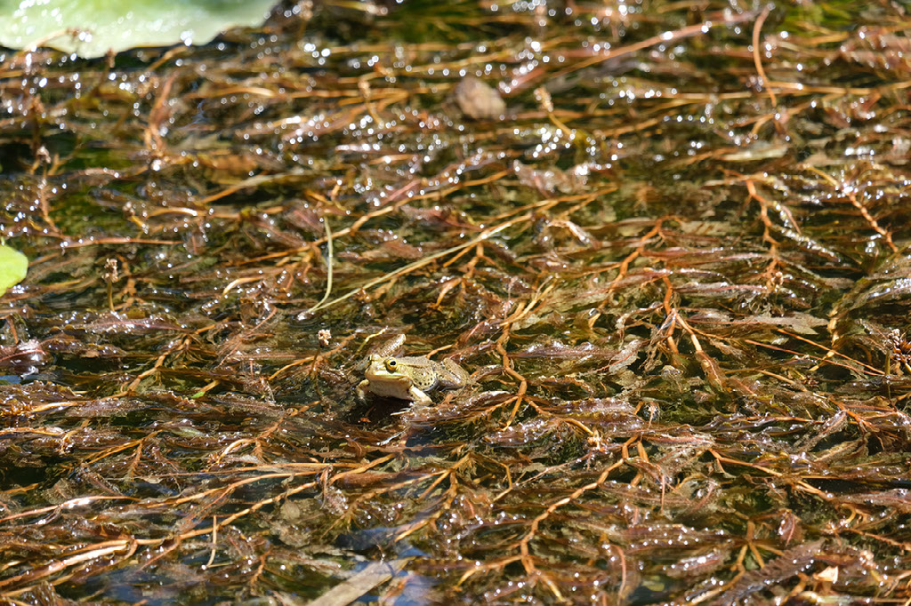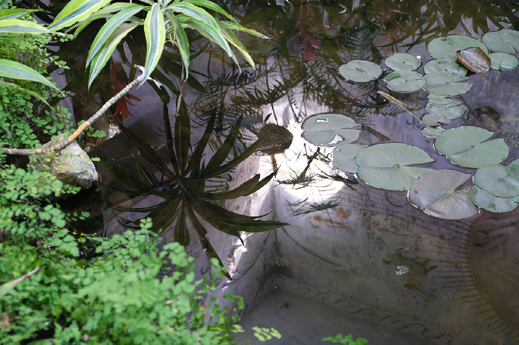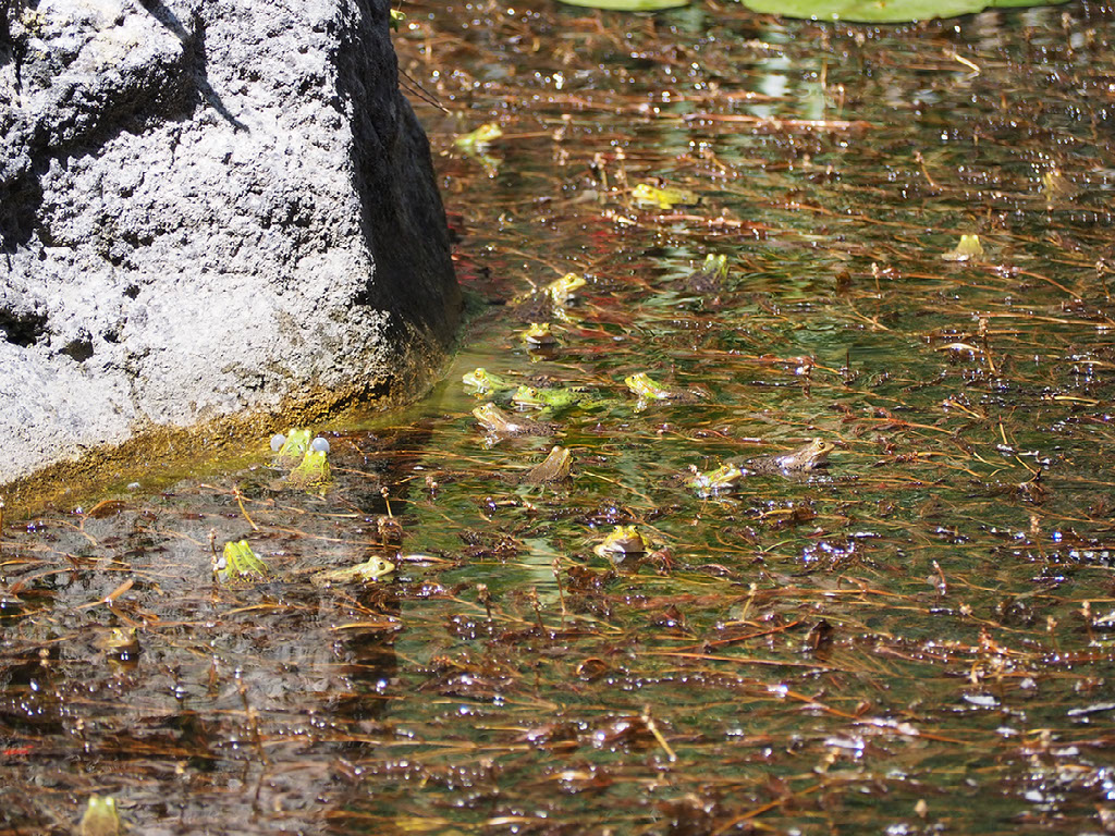 On what I’ll refer to as “ground level”, being the same elevation as the entrance, after a few minutes you come to this huge pond with a fountain. In here there are a bunch of fish and lots of frogs. Lots and lots and lots of frogs. Frogs making lots and lots of noise.