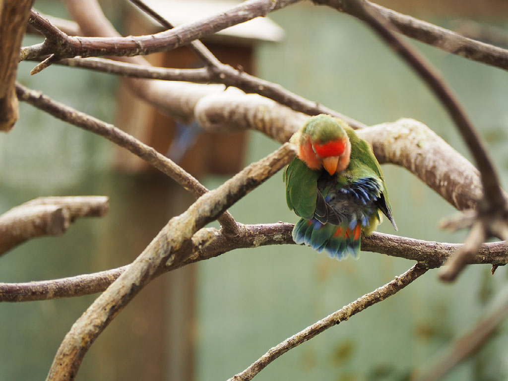 Oh, hang on, on the way back down there’s that aviary we didn’t visit on the way up. Let’s go look at birds.