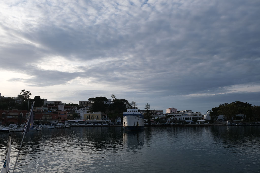 We find it moderately tricky to get il conto but once it arrives they take our money quickly. It’s 20-odd minutes until the ferry back, so we stroll round the harbour and join the queue to get on. It feels pretty crowded, but actually there is plenty of space once we’re onboard. What’s more, it’s a wholly different design of boat, being a different company ‘n that. There is a large open deck out back with seats and plenty of places to sit. We stand around, waiting for other arriving boats to get out of our damn way before setting sail.