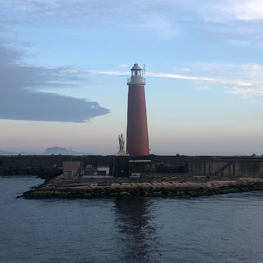 We’re welcome into Molo Beverello by a lighthouse and … Jesus?