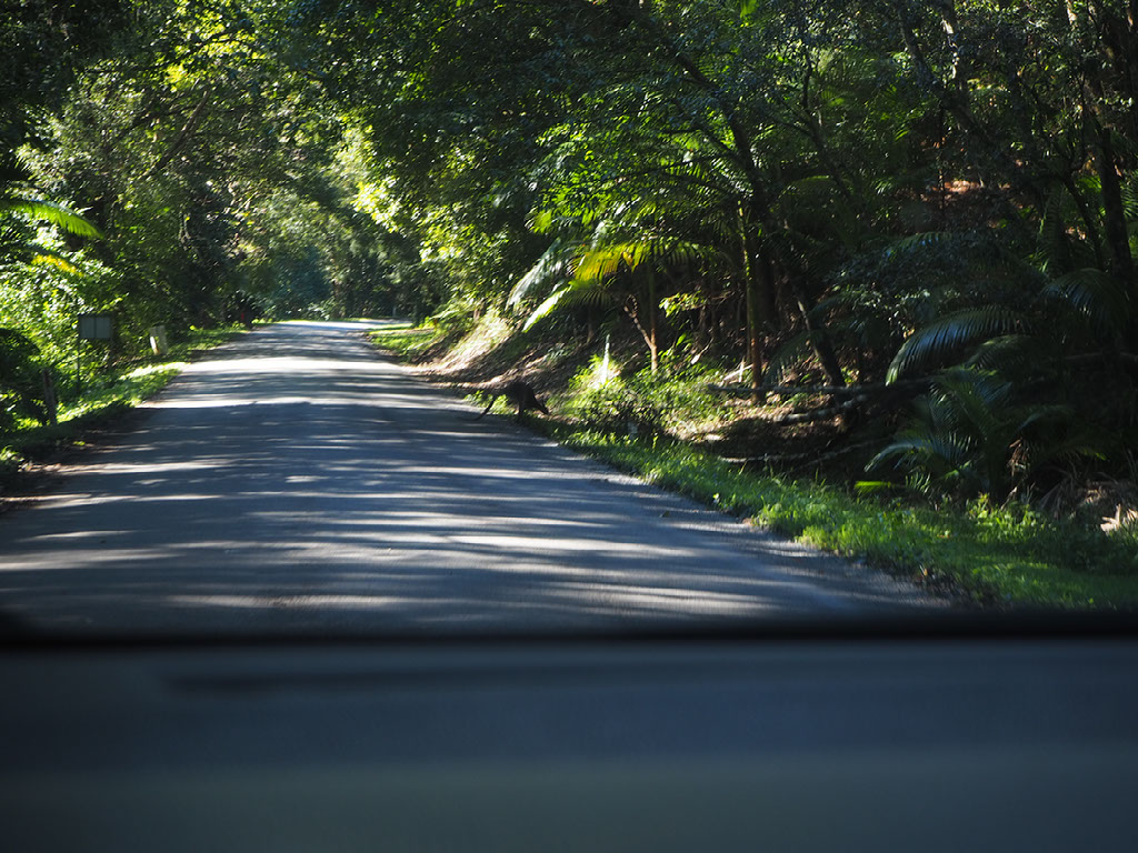 Back in the car, our journey to nearby Murwillumbah is briefly halted courtesy of a kangaroo blocking the road.