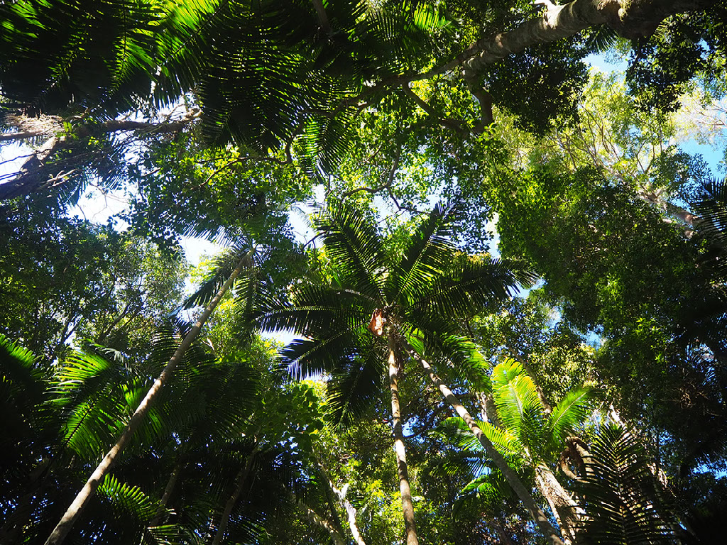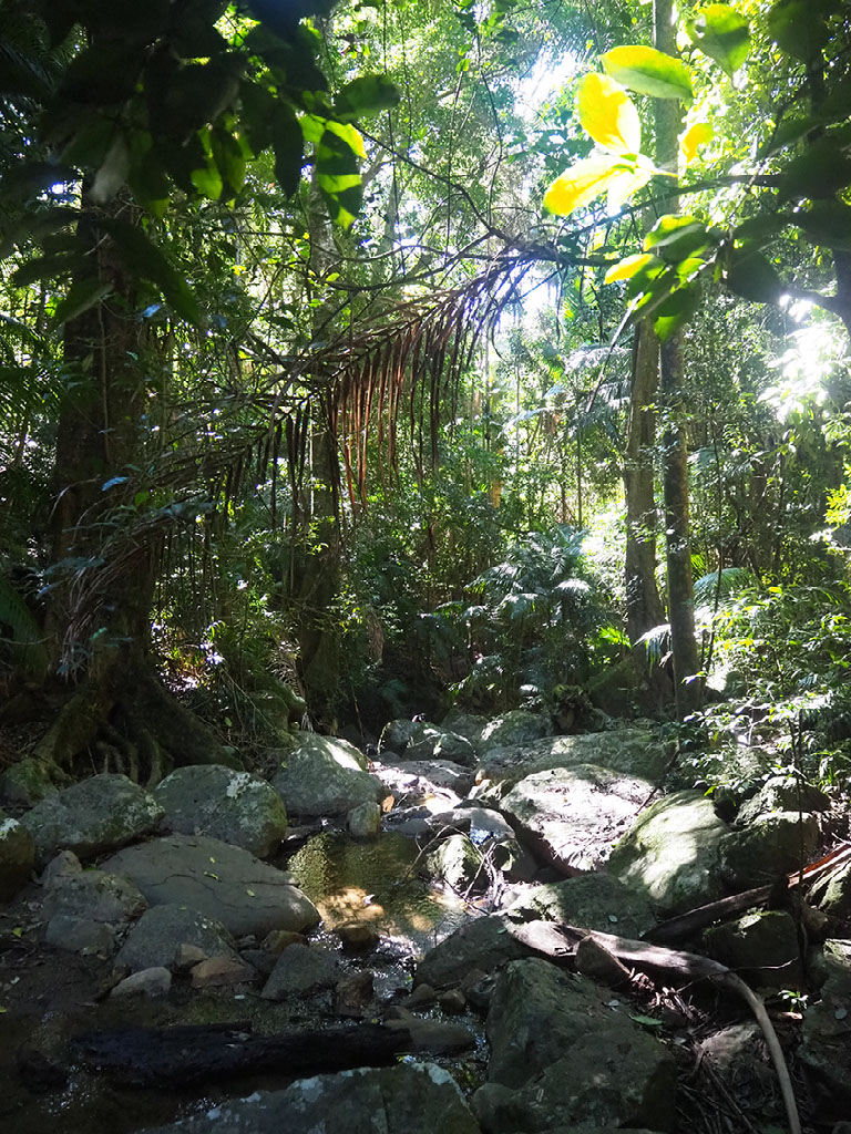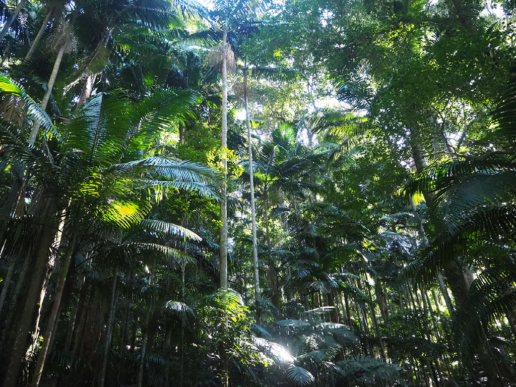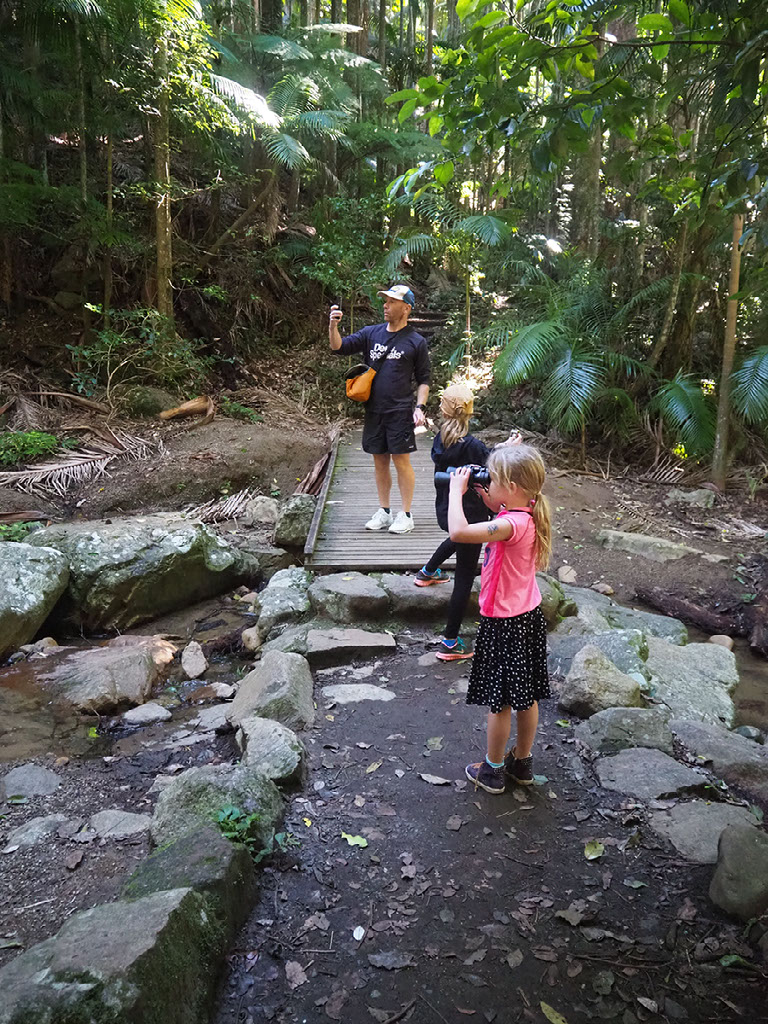 The walk is a rain forest. Actually there are two walks: a 20 minute short walk, or a 5hr summit walk with the hardest classification given by the Department Of Classifying Walk Difficulties In Australian National Parks. We do the 20 minute mostly-flat thing first. That it is largely enclosed by trees does not deter Harry from using the binoculars, and erroneously claiming that literally everything is close to her hands.