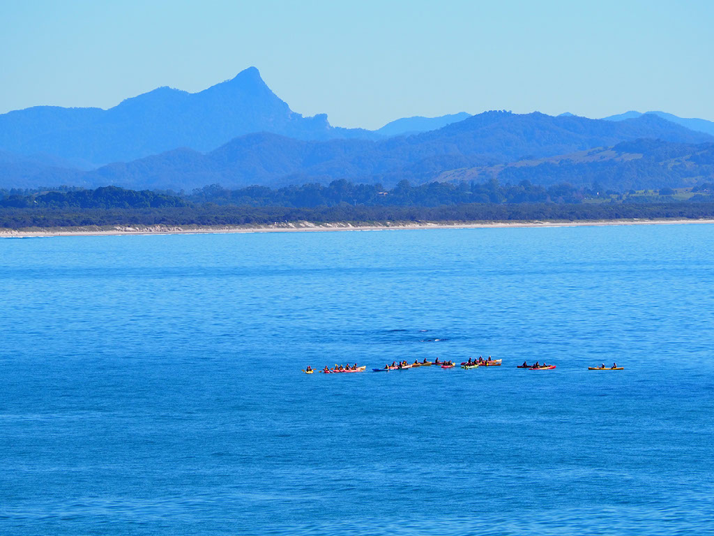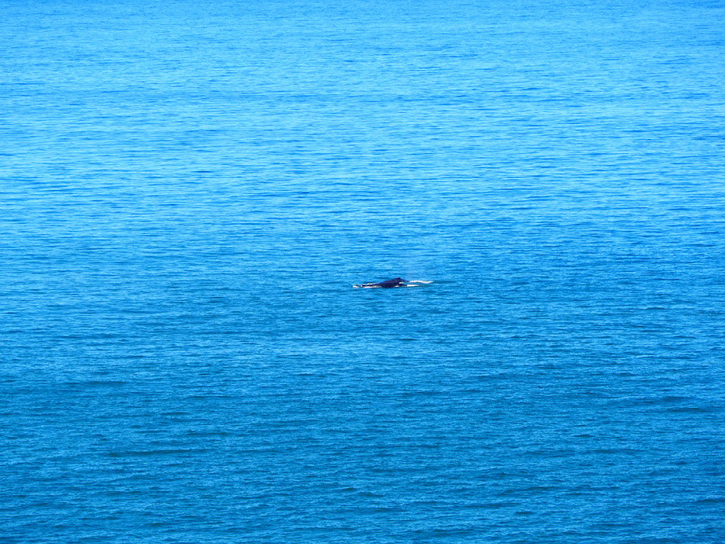 Here, we see whales. Like, tons of them. Back at the car Kevin had checked some app which details recent whale sightings, and indeed the Byron Bay website had said that June to November is the best time to spot them. Obviously we’d forgotten the bloody binoculars, but zoom lenses kinda help. Anyway, loads of breaches are visible with the naked eye. That’s why the kayakers are out in groups - they are tours, to get close to the whales.