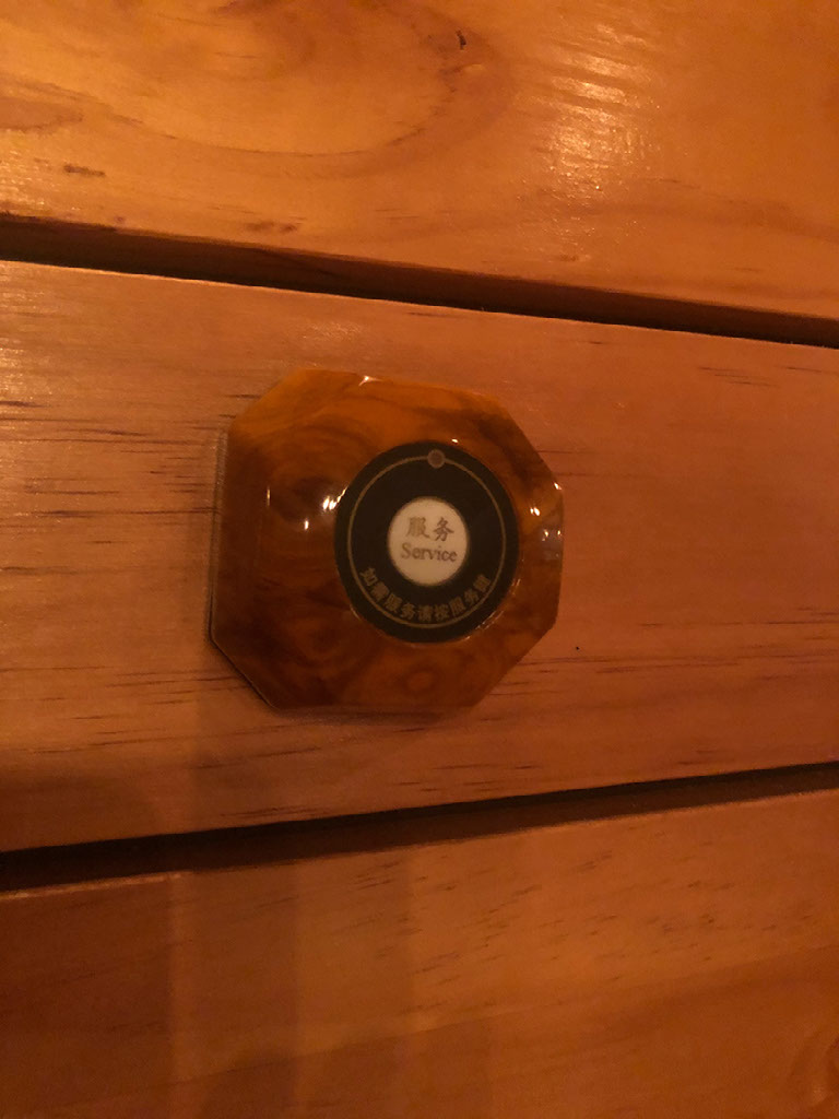 I press the service button. Nothing happens. I press it again and the waitress appears. More beer please!