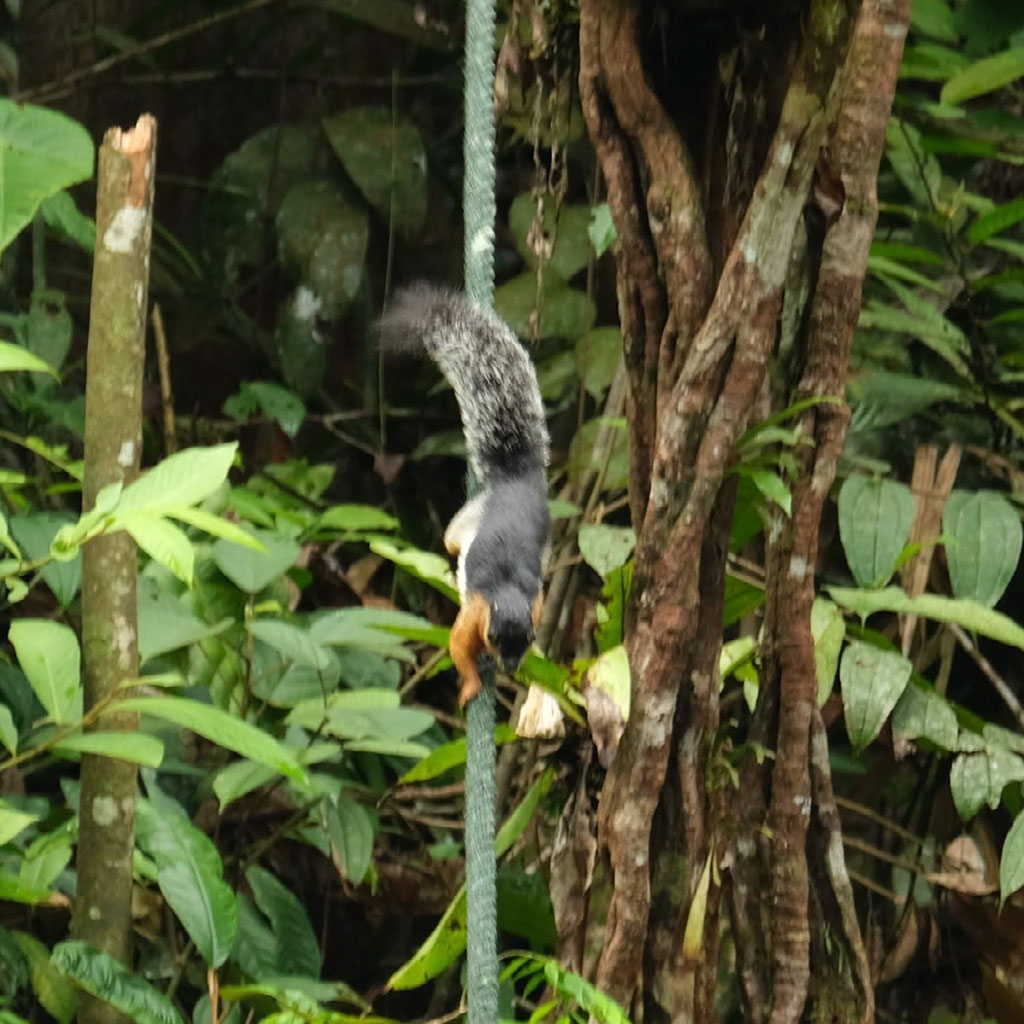 In the end we see 7 or so. There’s no real show. The main ranger dude says a few things but mostly he’s just repeating the warnings that if another big male turns up we should turn and run. This doesn’t happen; what does happen, as predicted by Nick, is that one of the local types of squirrel (there are 34 on Borneo!!) comes to steal some of the scraps.