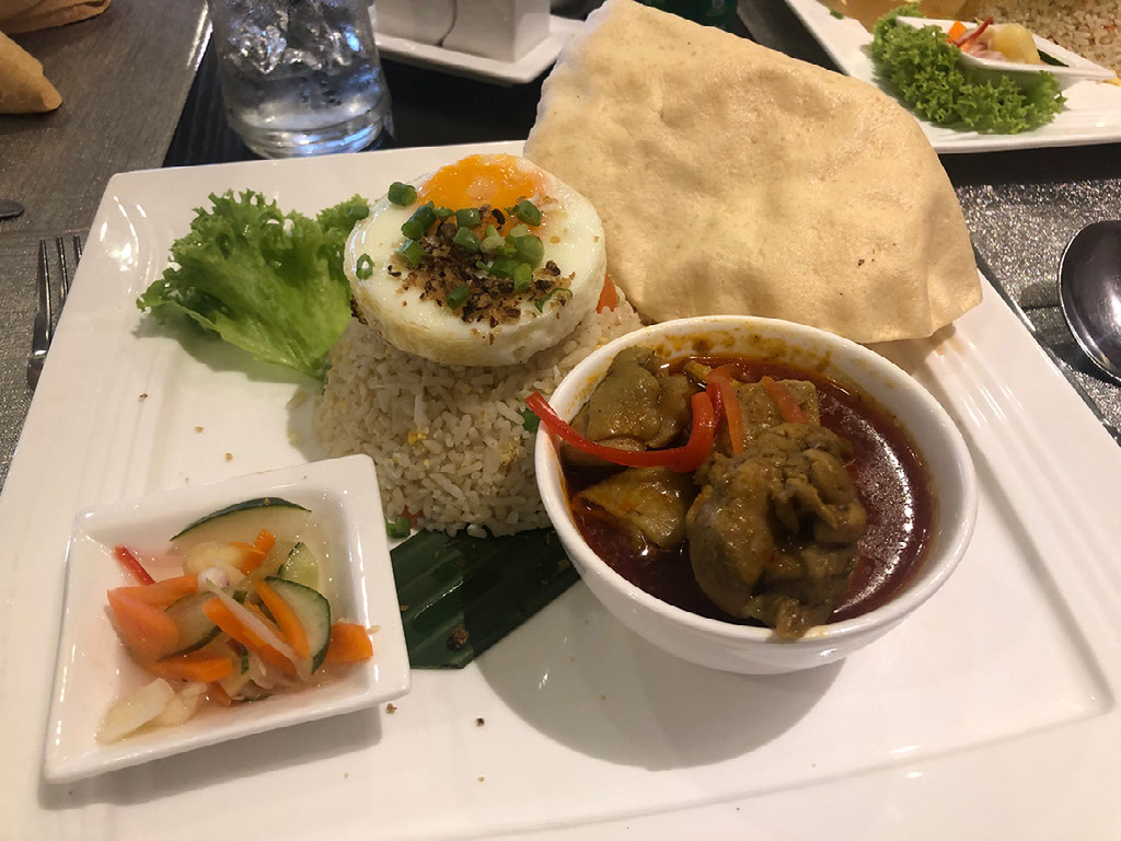 Someone is coming to get us a 3.45pm, so arriving at the restaurant just after 3pm is a bad enough idea. Helen realises she wants to charge her phone so pops back up to plug it in, only to return with the door key card not left in the “electricity on” hole so it was a waste of time. We each order nasi goreng, which takes longer than anticipated to arrive and is much more food than expected.