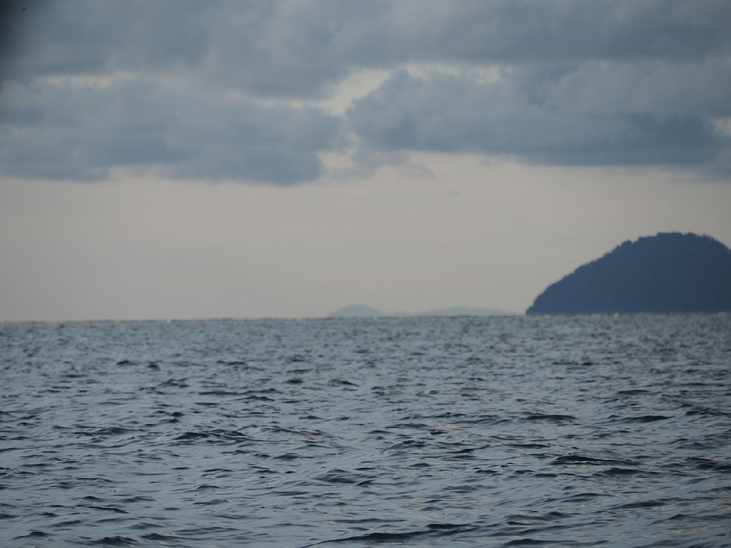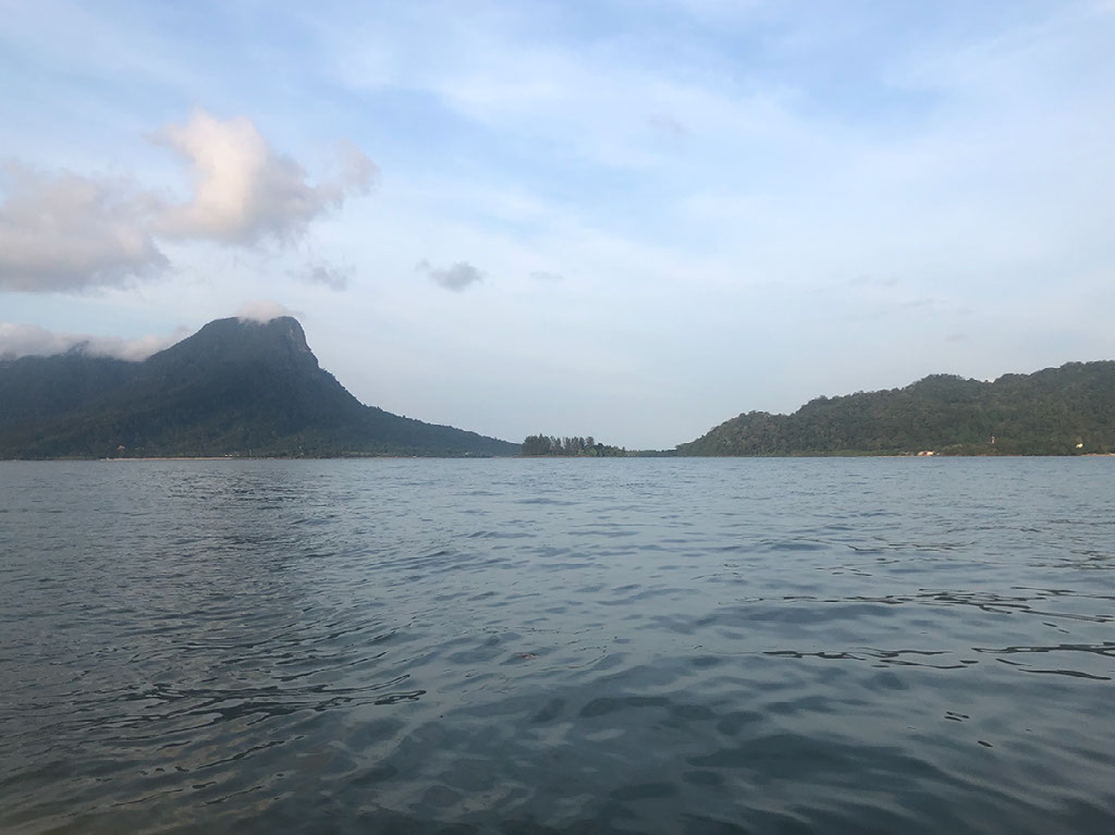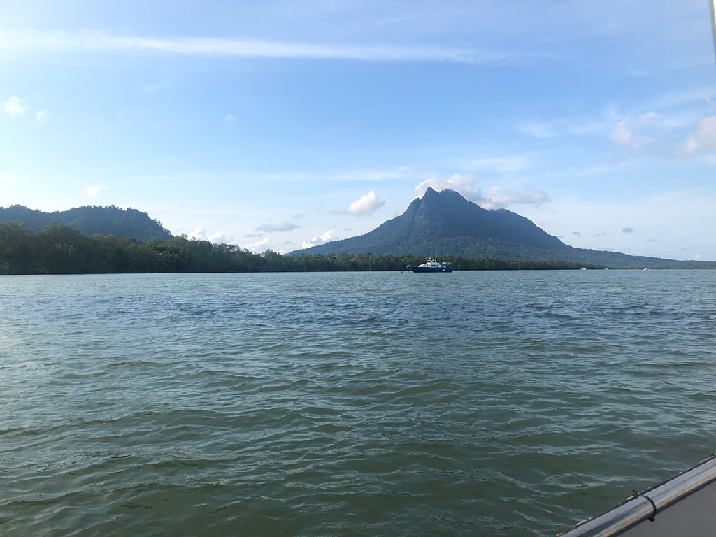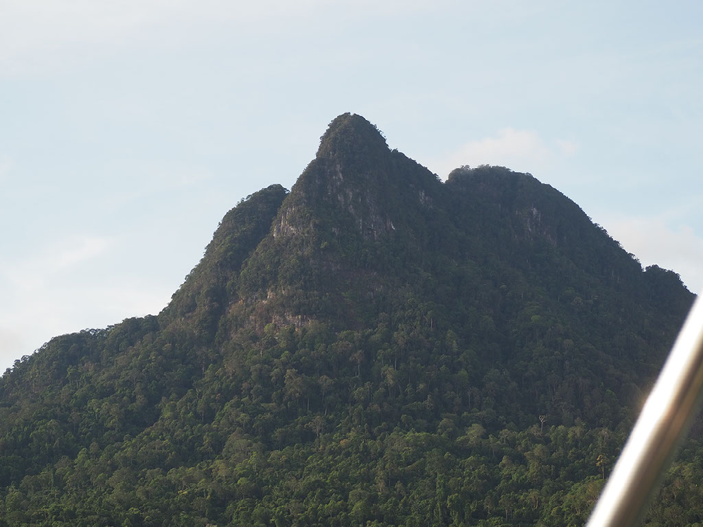 Mount Santubong, from this angle, looks like someone’s face laid on the back of their head. See the brow and eye and nose and mouth and chin? Yeah, that.