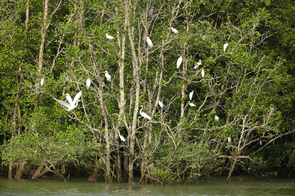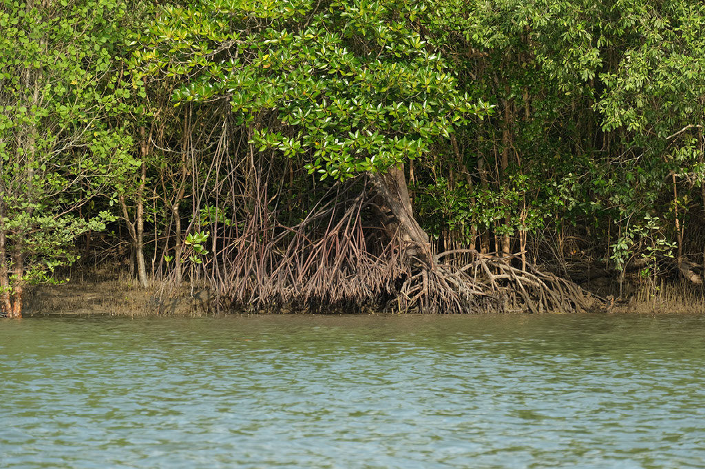 The river is lined with mangroves, with impressive root systems. Anthony tells us about the four stages of growth and stuff that occur on this side of the river, after which the soil has proven to be solid enough on which to build buildings for humans.