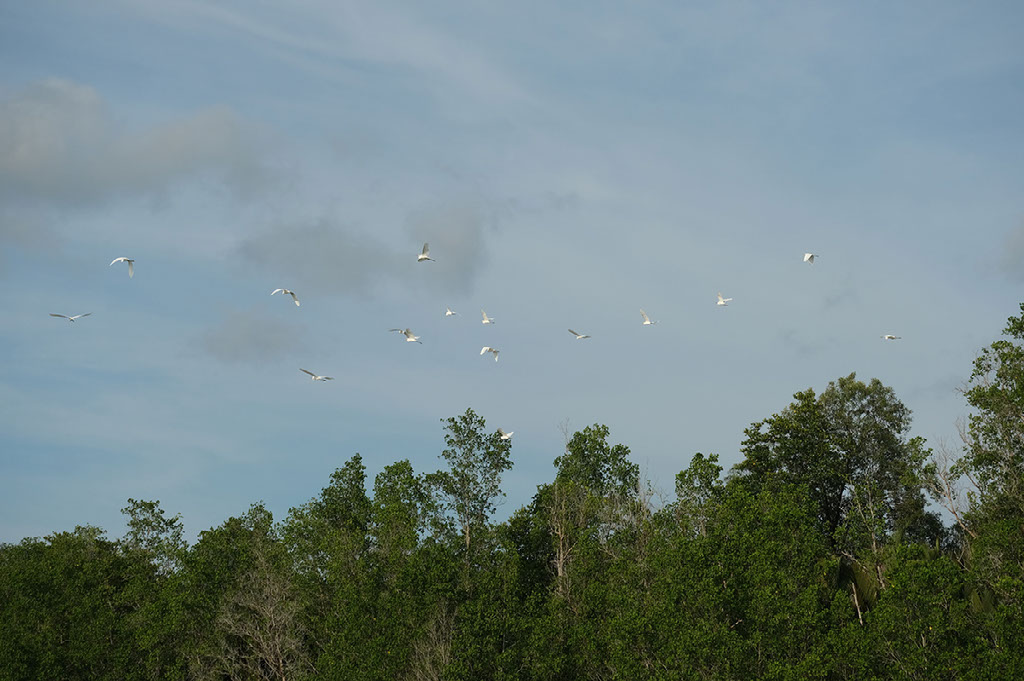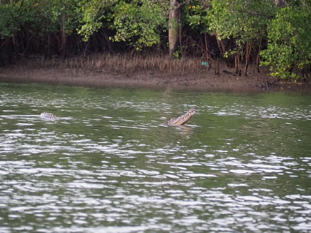 Out here we’re meant to be looking for Irrawaddy dolphins. The water is brackish, meaning 30% or so saline, which has some effect on both flora and fauna. Apart from the odd jumping fish, we actually see precious little wildlife. There’s a crocodile fairly early on.