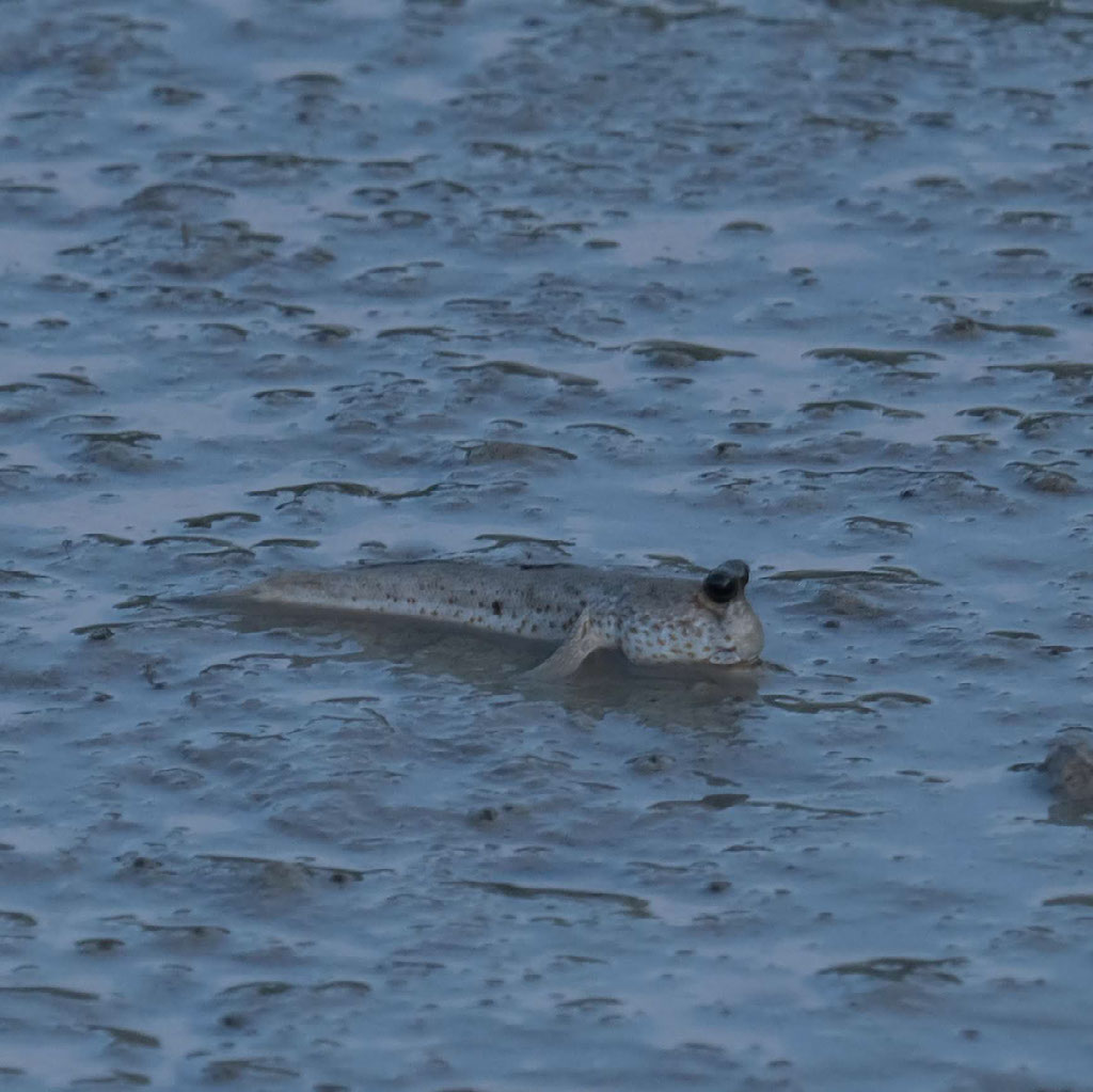 With some daylight left, we pull up against some sand to see mudskippers. These are fish that live on land. You heard.
