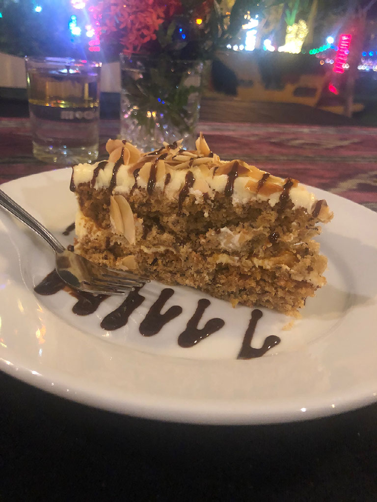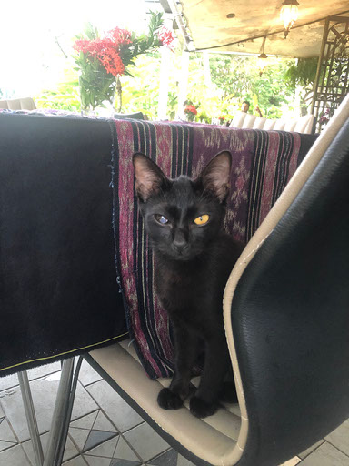 When a cat with two different coloured eyes (is he blind in one?) jumped on the table wanting to eat a bit of a leftover prawn, we were happy to let it happen – but the waitress came and scooped the scrawny scamp up. Soon she’d taken all the cats away, despite our protestations that we loved them. She wasn’t shooing them, it was all very affectionate, we just weren’t allowed to have them near us. Boo :-(