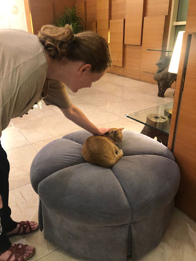 Returning to the hotel, we were greeted by another of Cat City’s cats – the sleepy ginger one which had been lying on various baggage trolleys or other perches many times since we first arrived.