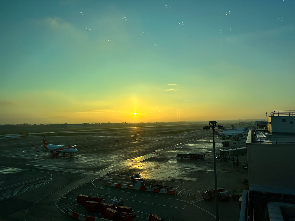 Our original departure time was meant to be 1540, meaning a great sunset was on the cards. But now we were in the lounge as the sun dropped, so I tried to unobtrusively grab a pic out the window here.