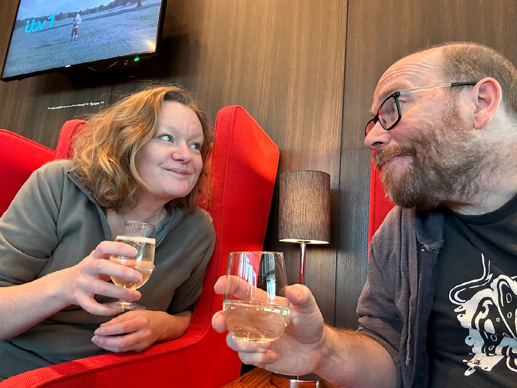 Chores done, our local cab firm app told us the driver was 7 minutes away, about 20 minutes early. So we put our coats on, grabbed our bags, and went and stood down at street level… only for the cab to arrive on time, not early at all. FFHS. He said literally nothing en route to Guildford station. We could’ve got the train but the changeover to the Gatwick service was scheduled at only 6 minutes, and as it happens that first train was heavily delayed so the cab was the right choice.