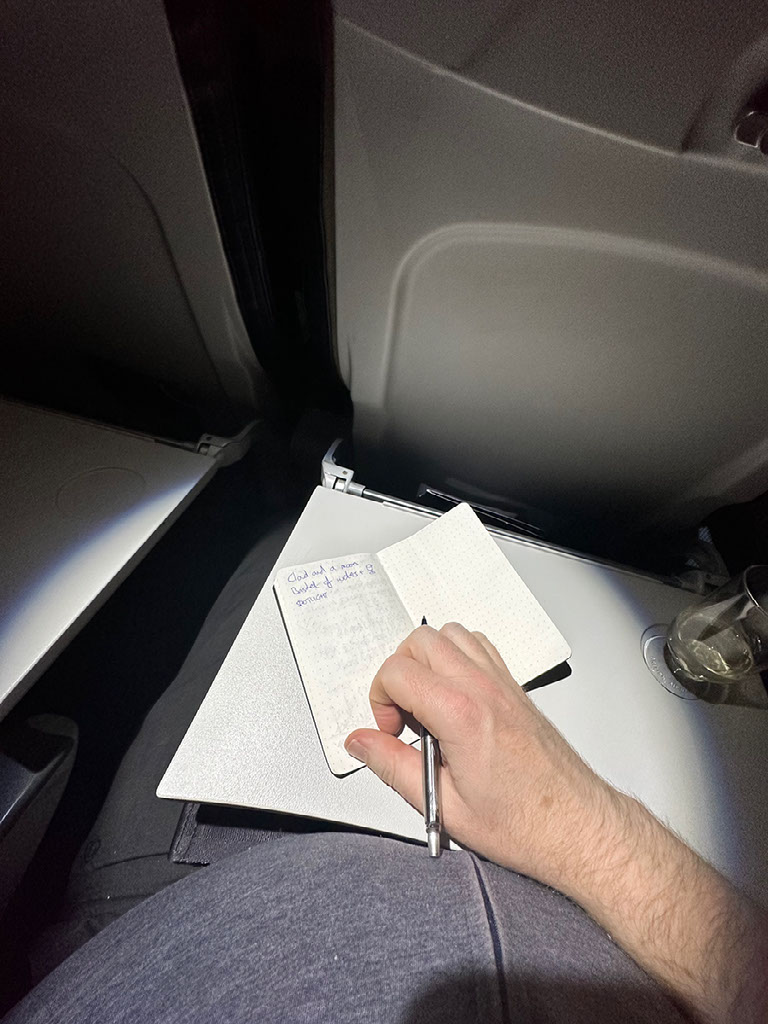 Helen took a pic of me and said, oh no, we need a different one. I looked super fat in it, supposedly “because of the angle”. I reckon it was more because (a) I’m pretty fat (b) I hadn’t had any fizzy drinks in 3 weeks or so, and now was really quite several fizzy wines in and in a pressurised cabin there was bloat.