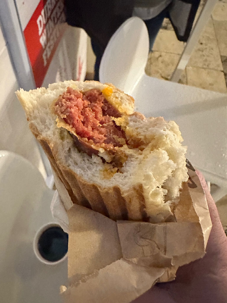 The spicy hotdog with mustard is nice though. The mulled wine is MUCH too hot to begin with.