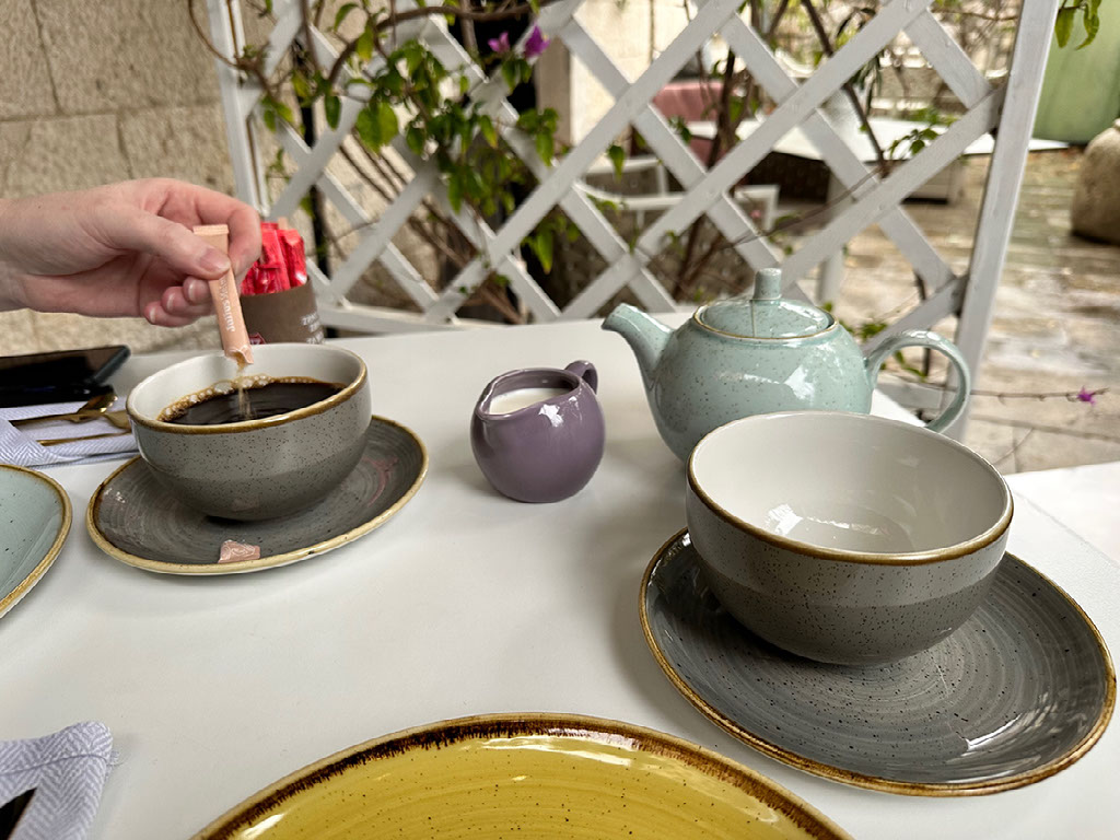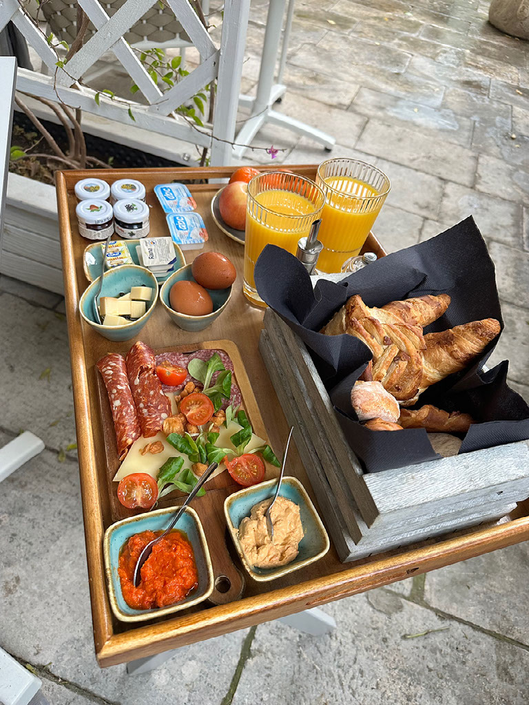 Anyway. We’d both slept very well and were feeling great, and ready for breakfast - to be served at 0930 on our little private terrace. Popped out a few minutes early and lo and behold, here comes a pot of tea and a cup of coffee and blimey a massive spread of all kinds of food. Wonderful