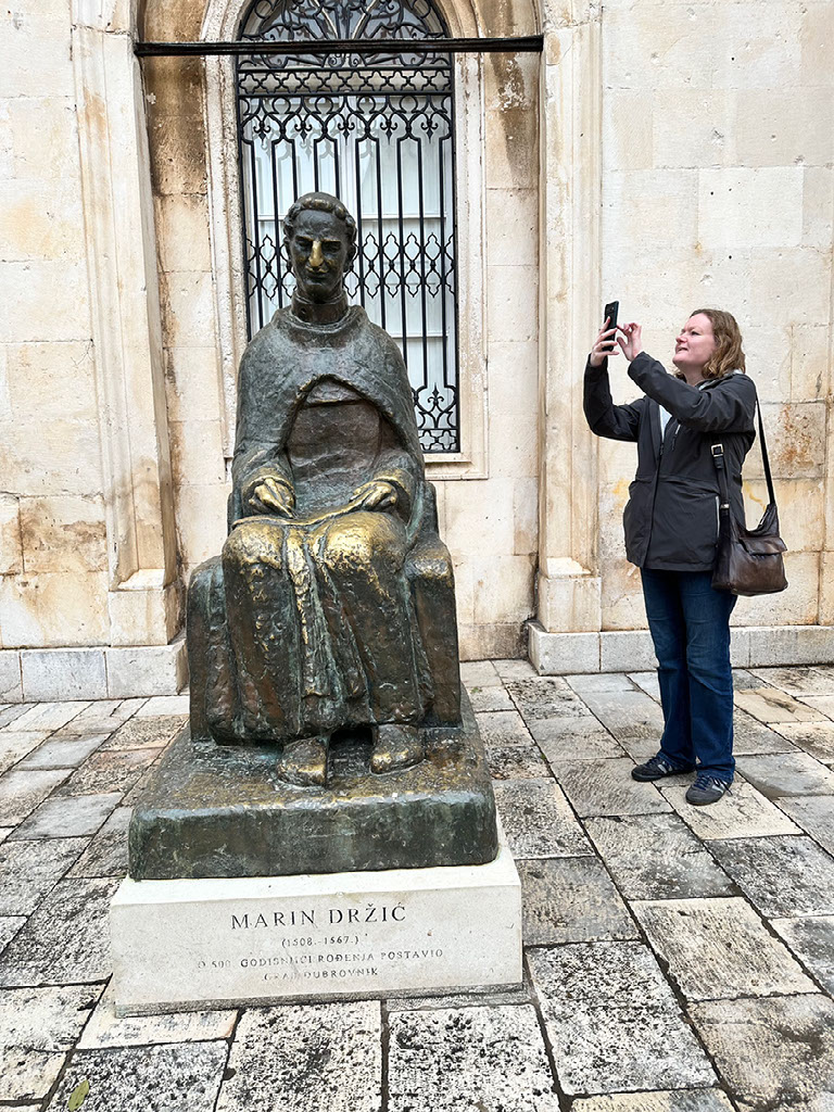 Turns out ol’ Marin was an important priest and writer, “Croatia’s Shakespeare” but dying when William was only 3 years old. Apparently one of Europe’s most significant playwrights of the era. Well whaddya know. His house was small, his bedroom had a kneeling thing for prayer, a desk for writing, and a bed. There were statues and paintings of him made my modern artists. I took no pics and didn’t really find any of it interesting except learning of his existence. Sorry.