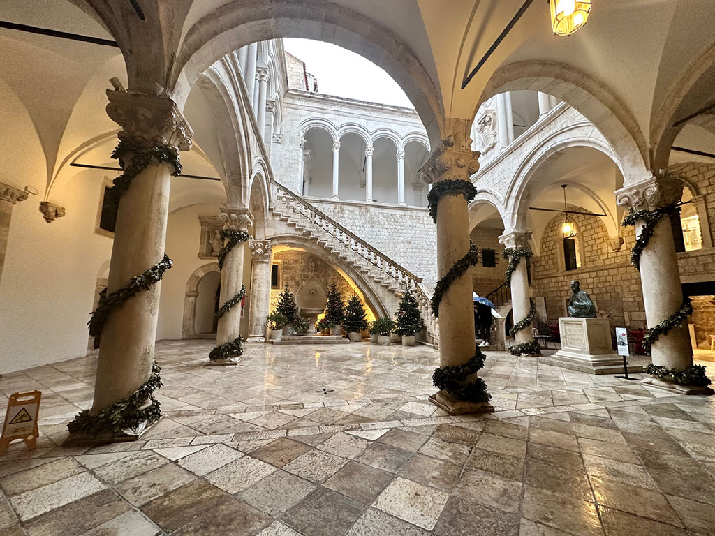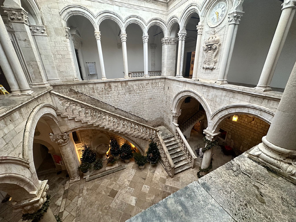 Again back along Stradun, we next visited another place our pass was valid for - the rector’s palace. This is a big imposing building outside of which a singing woman on Friday night had stopped us to ask if we could take a pic of her, and then she reciprocated and my cynical Londoner mindset was briefly convinced she was going to run away with Helen’s phone. Or was it mine? Doesn’t matter. She didn’t, she was just being friendly - which was a common theme. We were yet to speak to anyone that wasn’t extremely friendly and welcoming.