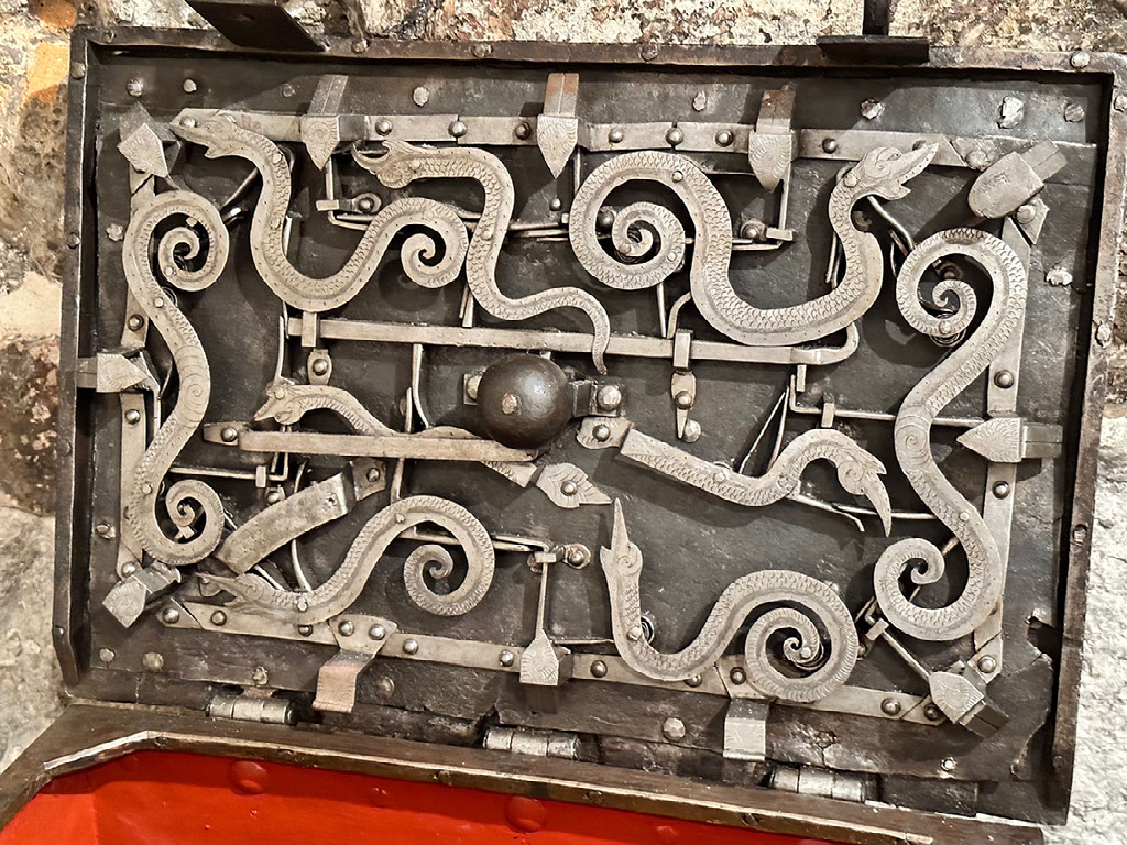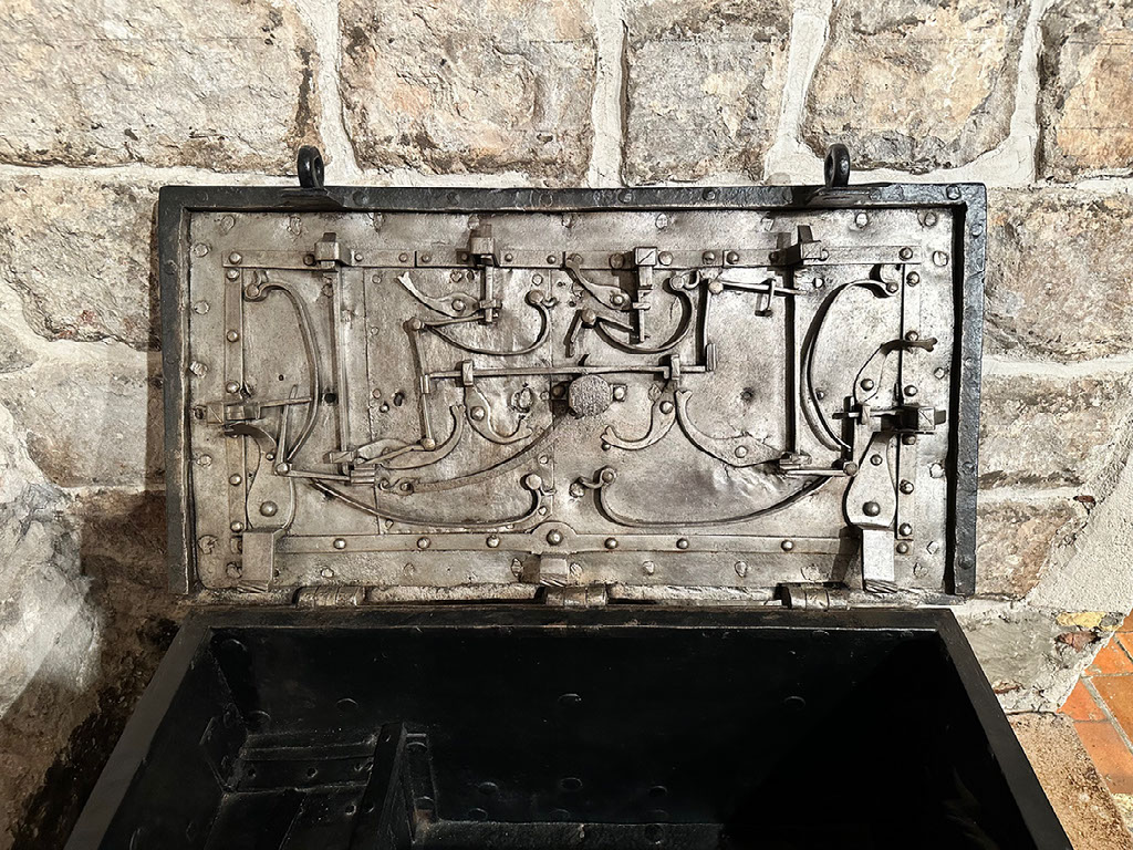 And this is a magnificent lock for a portable iron box, inside the lid. Here’s another one. Fascinating.