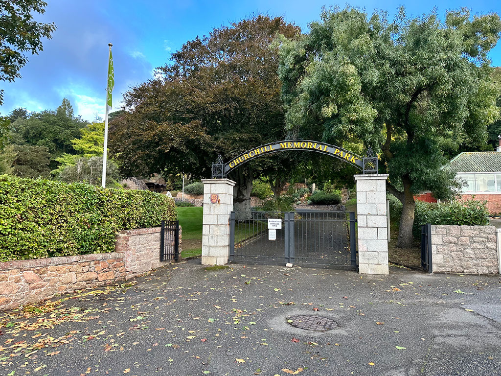 Come 0800 and I got into my running kit, and set off to walk to Jersey Parkrun - there is only one run here - at about ten past. Google maps walking directions told me it was about a 25 minute walk, and very uphill. The route starts by crossing the road and entering Winston Churchill memorial park, just behind the beach car parks.
