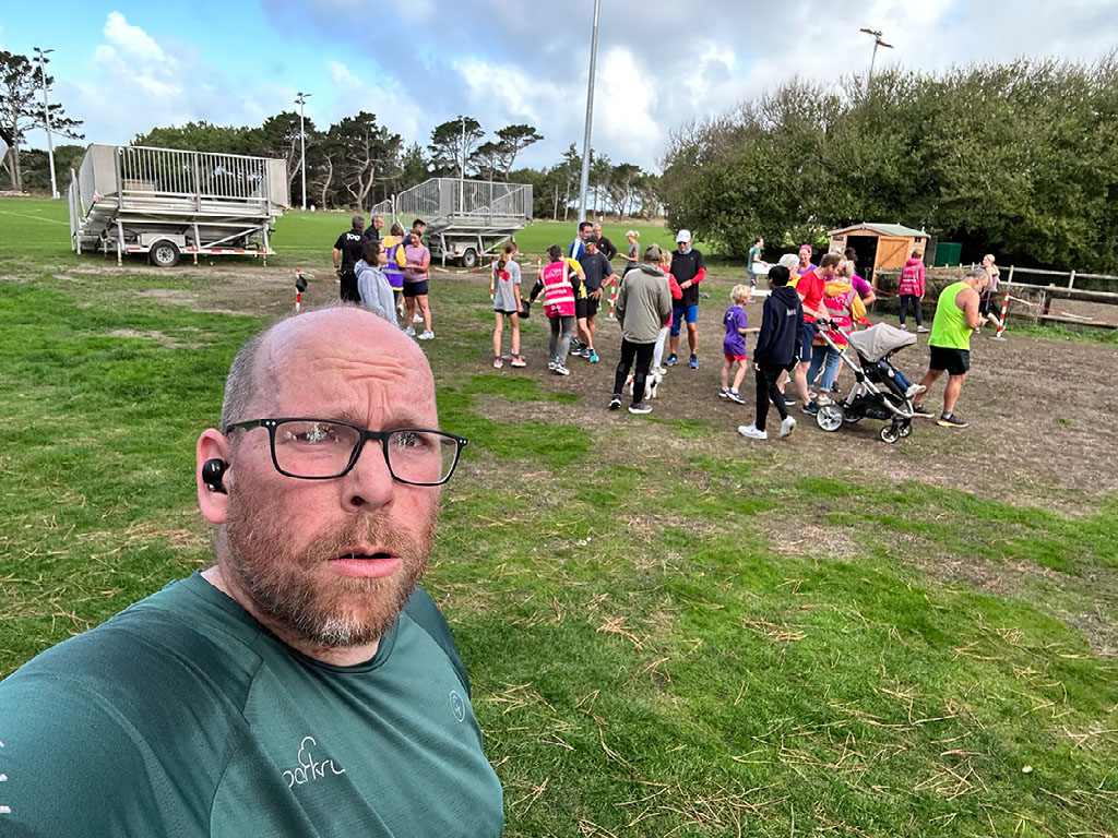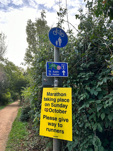 Walking ever more slowly to the start, there are hardly any other Parkrunners to be seen until suddenly there are tons of them. I’d read that as well as the start of #parkwalk in October, Jersey was being “taken over” by Macmillan Cancer too, so perhaps the turnout would be bigger than usual.