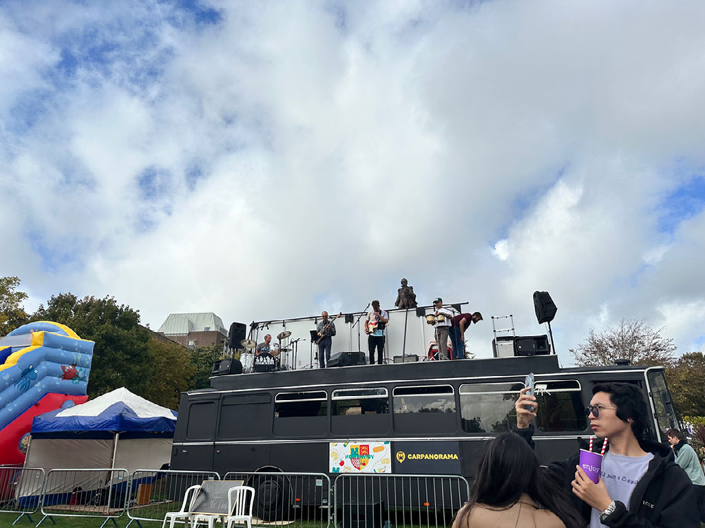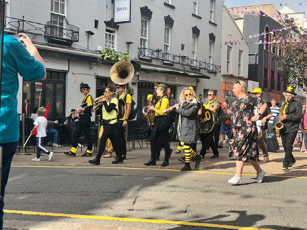 There was a band playing, on top of a bus. OK then. Nothing says “friendship between Jersey islanders and Normandy folk” more than a band of white men playing anaemic Bob Marley covers.