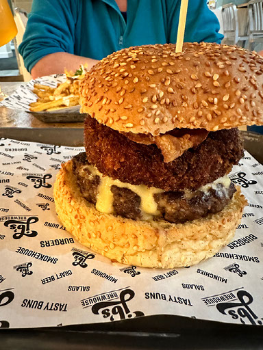The kitchen wasn’t opening for another 45 minutes, except then it opened early. So I could finally satiate my ravenous hunger with this frankly suicidal burger THAT HAS A MAC AND CHEESE PATTY IN IT. And if that wasn’t enough, I also helped out with more than my fair share of “filthy fries” - chips covered in cheese and a beer sauce.