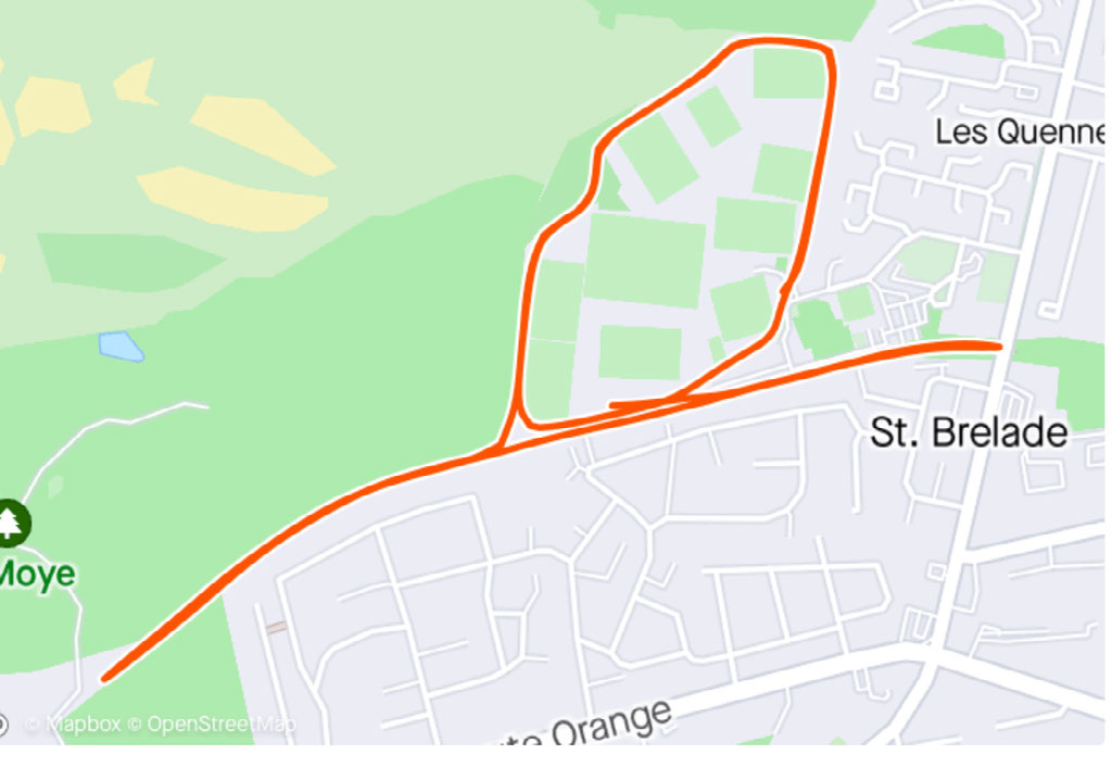 The start/end point is at Quennevais sports centre, which has tons of pitches and stuff for all kinds of sport. Cycling tracks, football pitch, hockey pitch, pétanque, everything. I found the start and did the self-conscious selfie thing next to the sign, for no reason other than to kill a few moments.