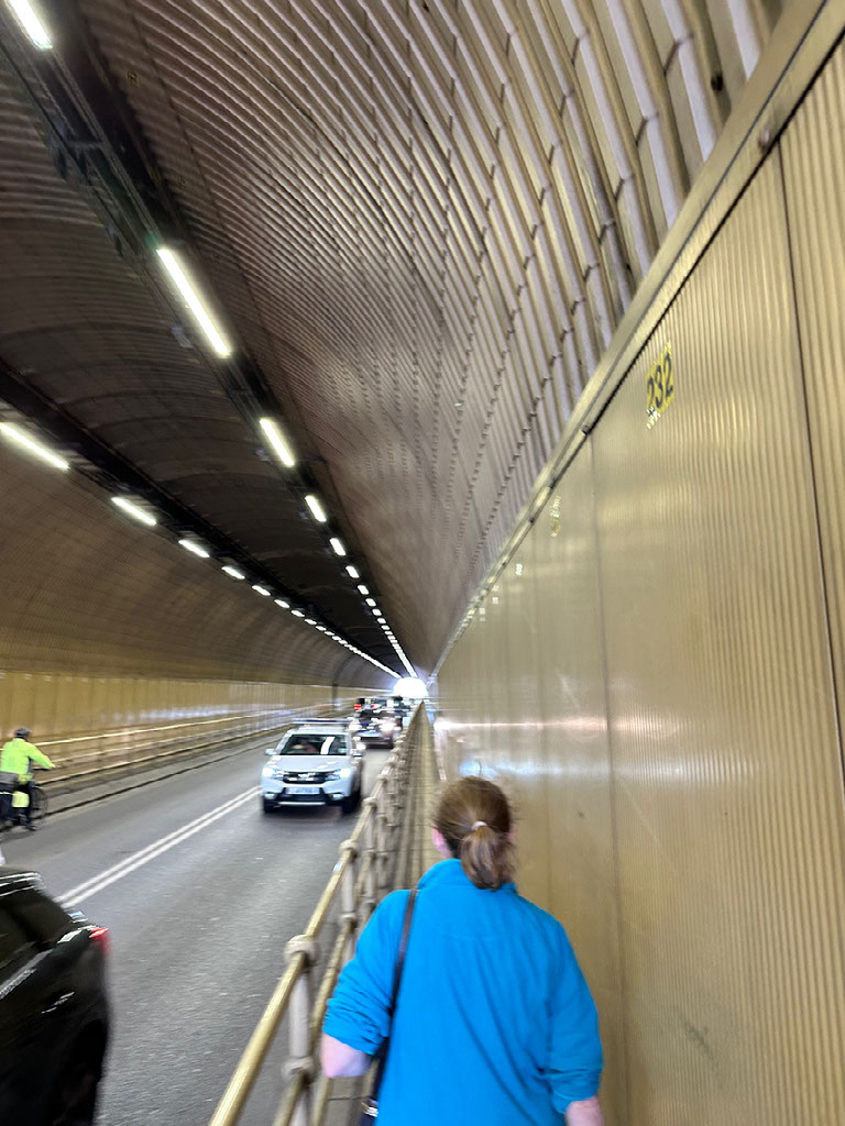 Before long, we both realised this was perhaps not the way to anything nice. In fact, the more you zoomed in on Google maps the more it revealed that we were heading towards a working dockyard, rather than a millionaire’s playground full of fancy yachts and stuff. Disconsolate, we headed back towards town via the only route seemingly available to us: the tunnel of pollution.