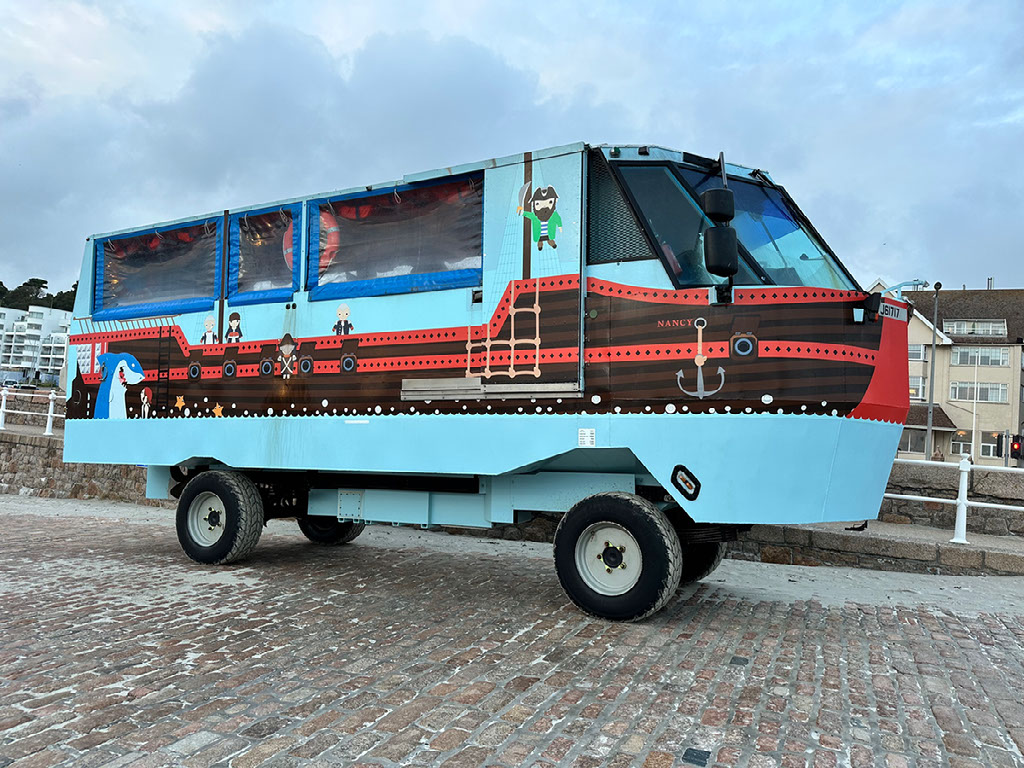 By now it was, I dunno, 1845 or so. The beach was shut until 8pm so we thought maybe we’d be able to see the last of whatever these races where, but there was no sign of it. The weird bus boat thing was, however, parked up for the evening.