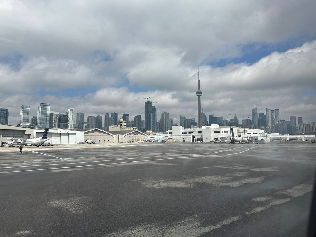 I’d done my own research, checking out the usual flight path this route takes and picked a seat on the left hand side of the flight with expectations of great views of Toronto city as we approached. Well, I got it wrong - sort of. The weather put paid to me having any decent views on the initial approach, and then when we pulled a U-turn for the final part everyone in a seat F had the great views. Ah well. I did enjoy seeing Tommy Thompson park, at least.