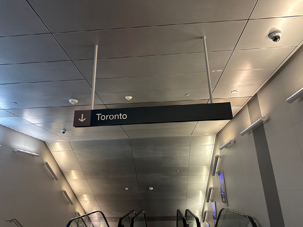 Bags were already coming out on the nearest carousel beyond security, and my bag was perfectly located for me to just walk up, grab it, and leave in one seamless move. Hand the printout to another member of staff and away to the city I go. There’s two ways to get to the mainland from here: a ferry, or walk under the tunnel. THIS WAY TO TORONTO. As if it wasn’t obvious.