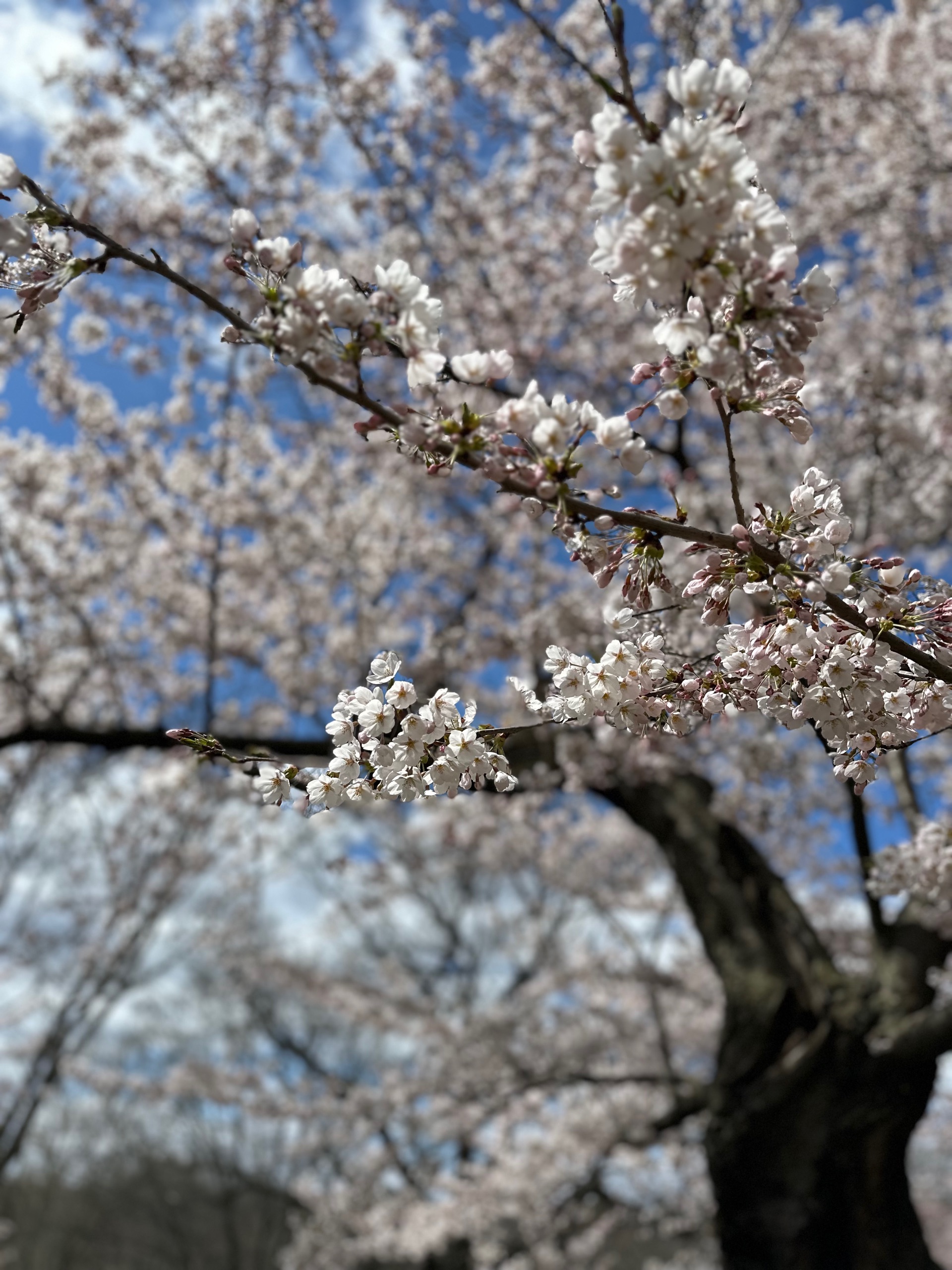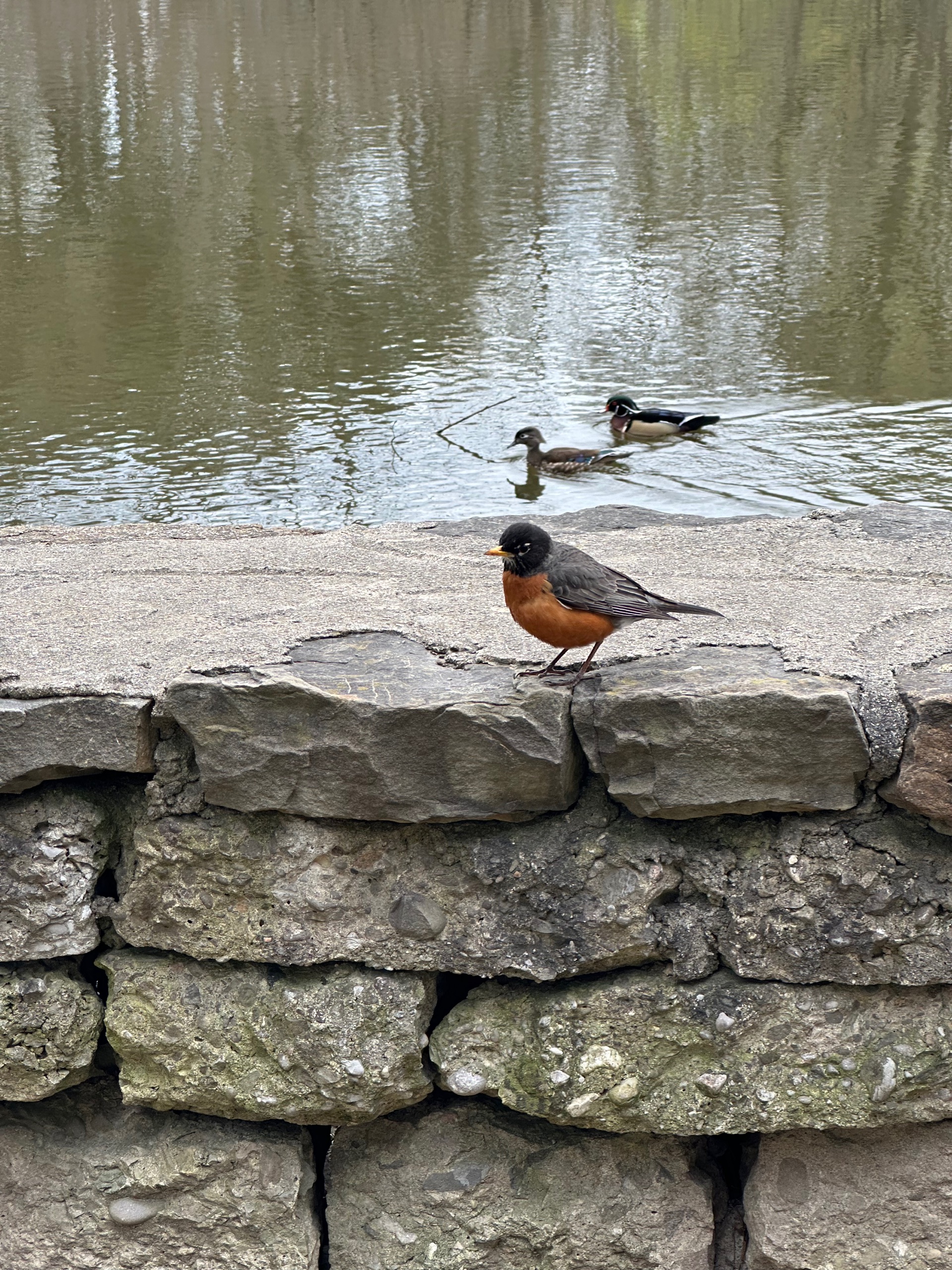 Dunno where though. I entered the park at what I think was the SE corner, and there were wide concrete paths and a massive pond. A large robin - robins on this side the Atlantic are MASSIVE - signs saying not to feed the waterfowl around the big lake, and lots of people most of whom were walking dogs. I wandered into the park, not really that impressed at the start, and certainly didn’t see any cherry trees.