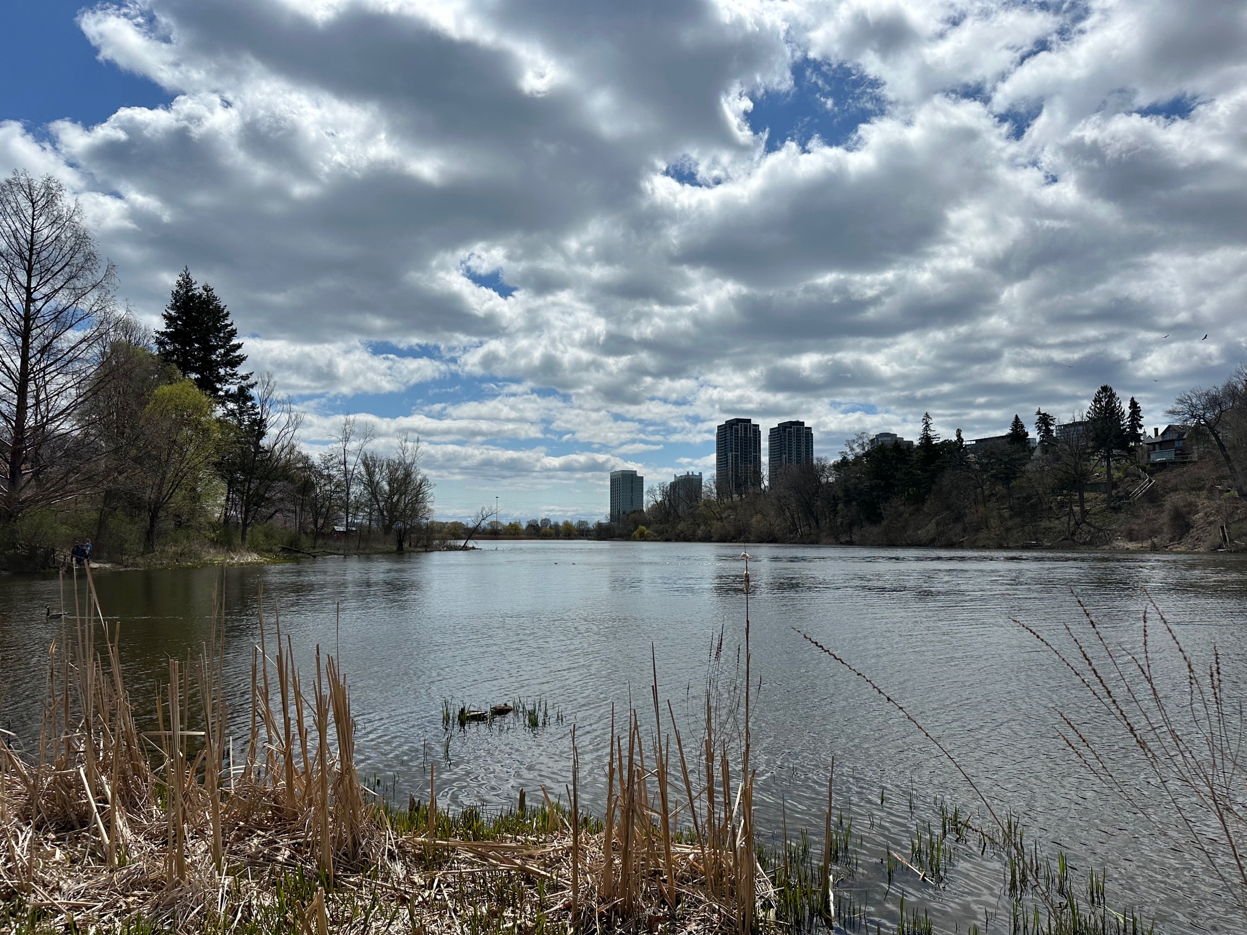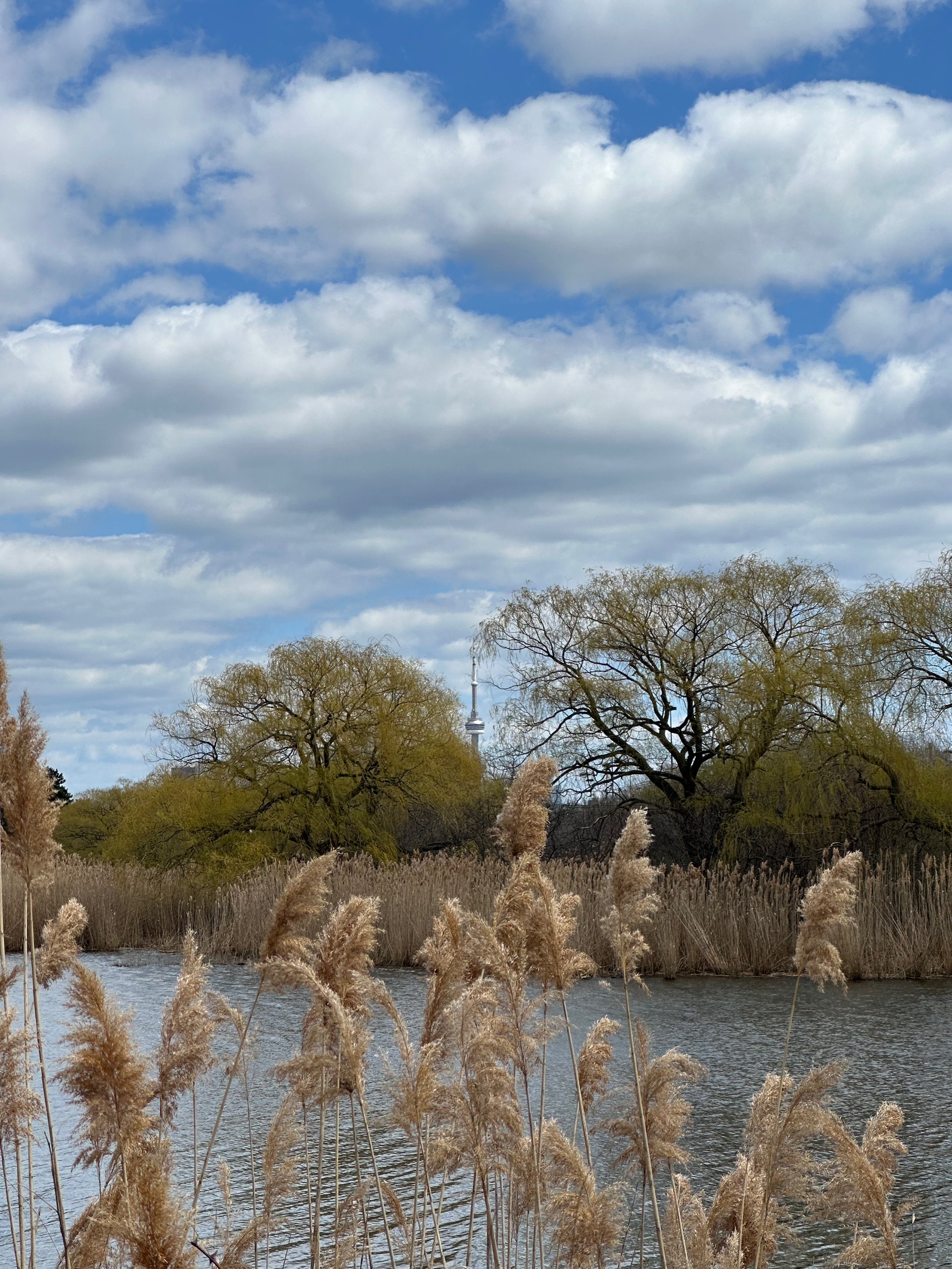 Well anyway. Through that park, one wrong turn into a flooded boggy bit, swift u-turn, and back towards High Park again and the southwest corner. Didn’t find the sculptures but, marvellously, there was now a very distant view of the CN Tower popping up between the reeds.