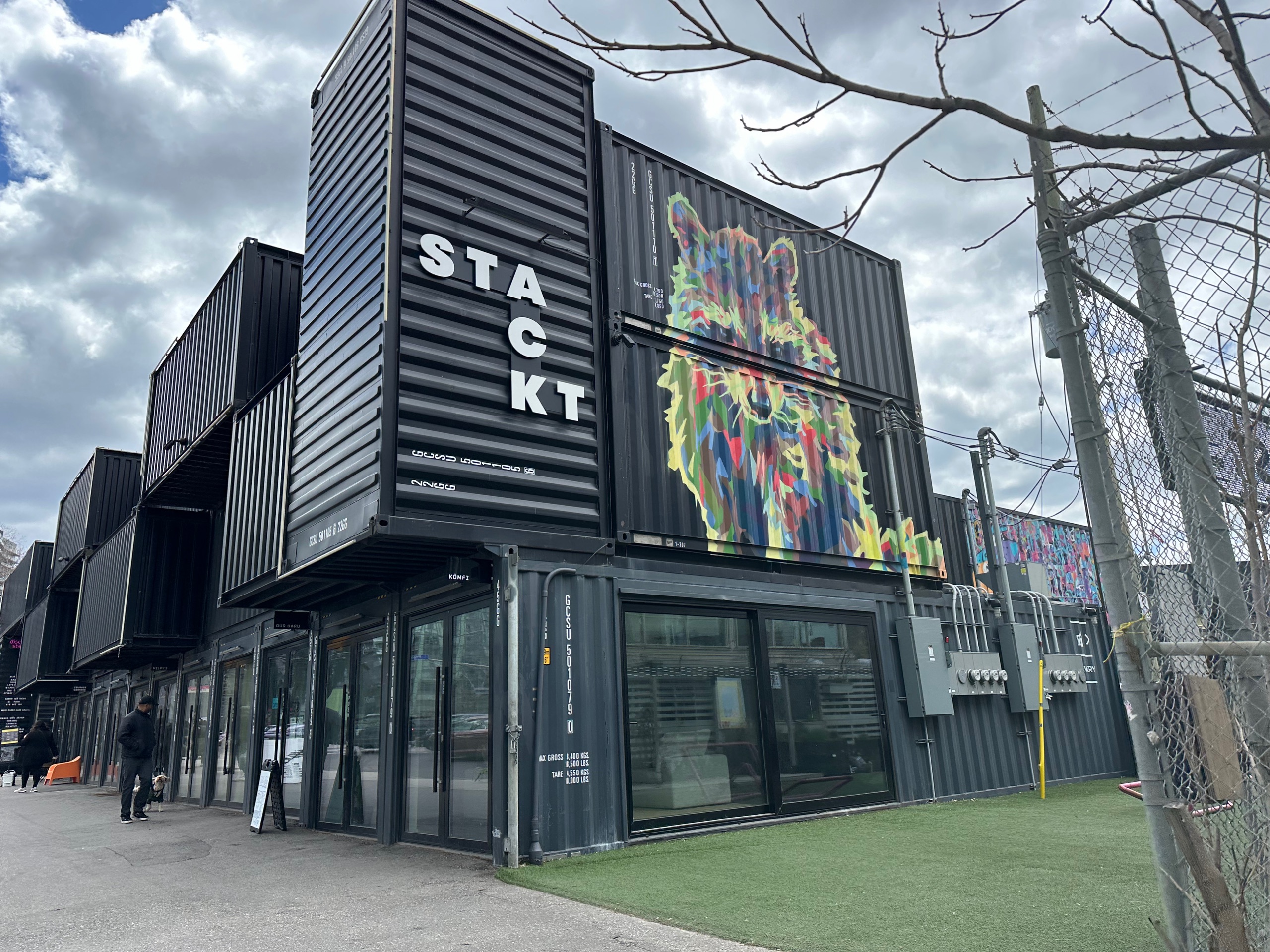 A tram was due in just a couple of minutes, busy enough that I had to stand the whole way back towards town. No shouting, no muttering, a thoroughly unremarkable journey back about, I dunno, 70% of the distance I’d come in the morning. I fancied lunch, and I fancied a visit to “North America’s largest market made of shipping containers” - behold, Stackt.