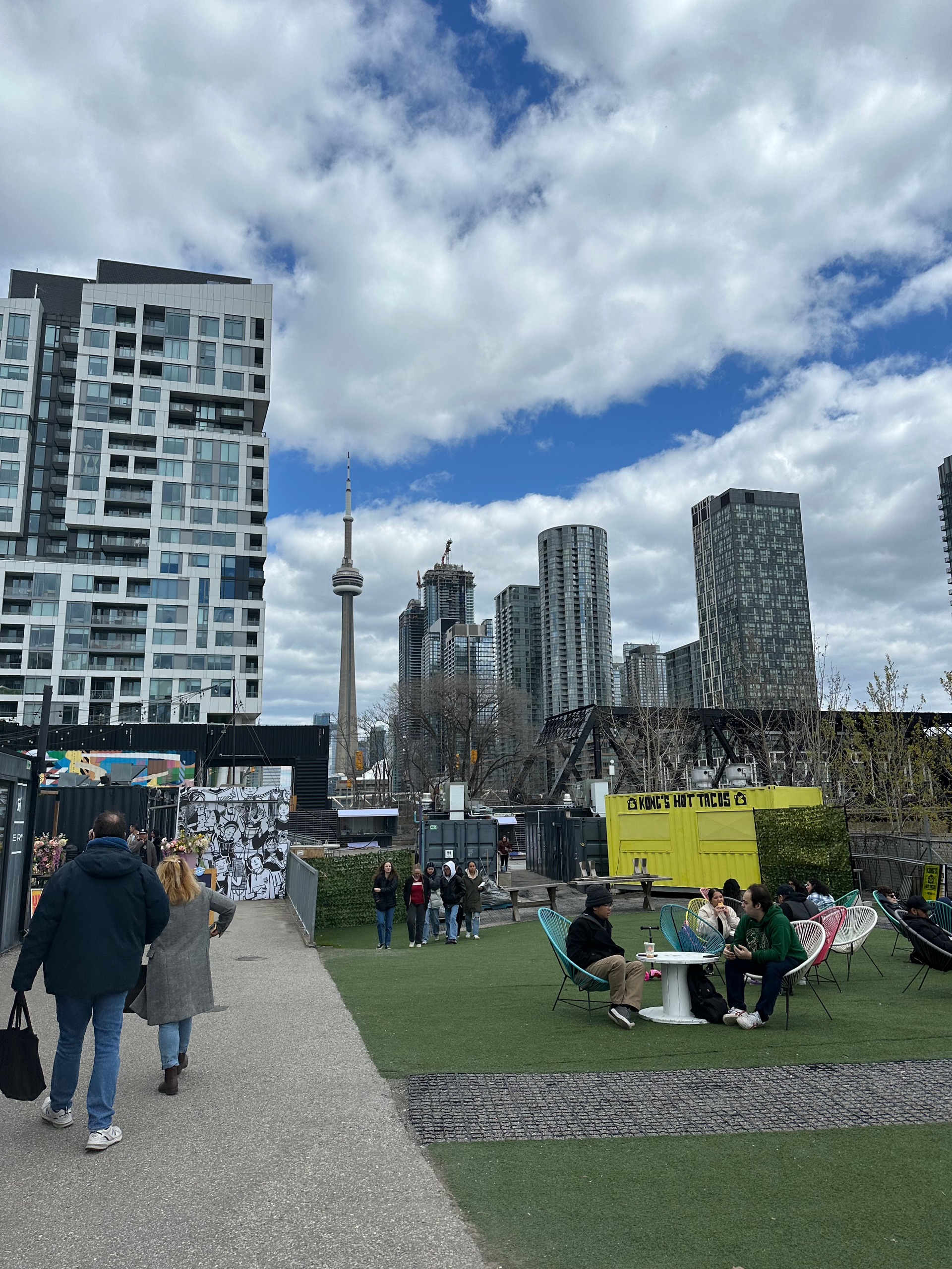 Being a North American city it’s largely grid shaped. The tram went along one looooooooooong straight road, past seemingly endless restaurants and bars and supermarkets. As things became more residential the buildings didn’t really get shorter, there appear to be a ton of high rise tower blocks that people live in, not just work. At some point we turned off and went north one block before heading west again; turns out there were roadworks requiring a diversion. Shouldn’t have been surprised by this, about 40% of Toronto seems to be roadworks right now.