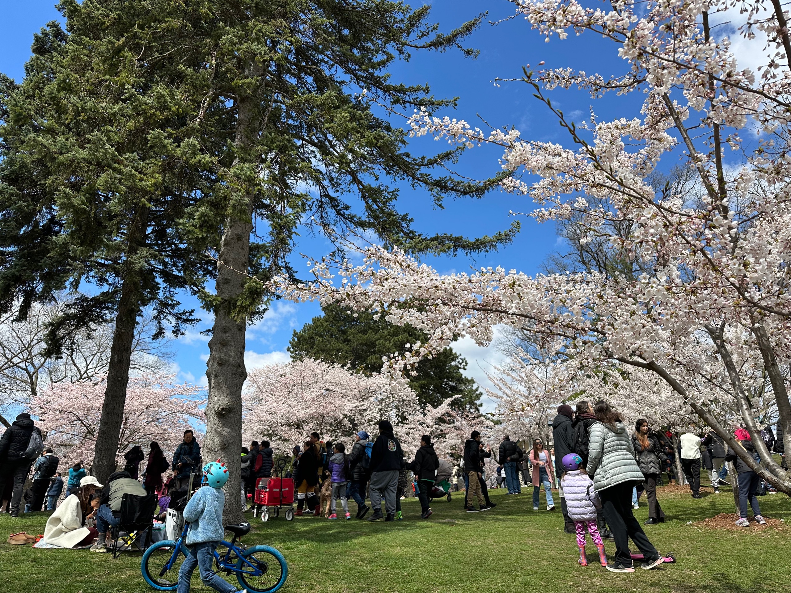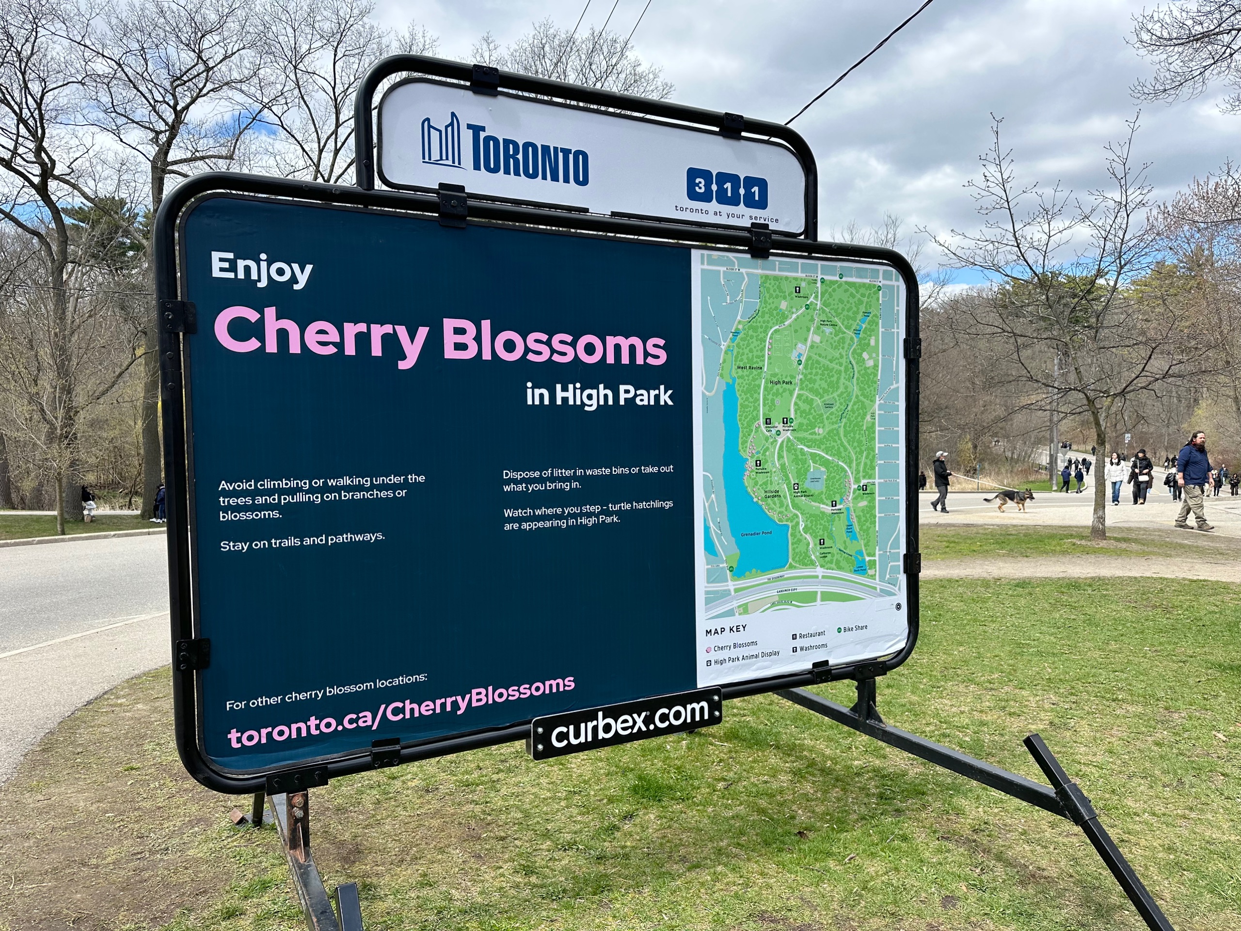 Excitement over, there was still another 10 minutes or so on the ride. Rang the bell to get off at what I believed to be the best stop, only to find myself in the middle of a bridge where the trams travel between lanes of busy motorway traffic and the only way out is a subway which, joy, was flooded. Grim. But, I was where I wanted to be: High Park. For apparently, here, in April in Toronto, there be cherry blossoms.