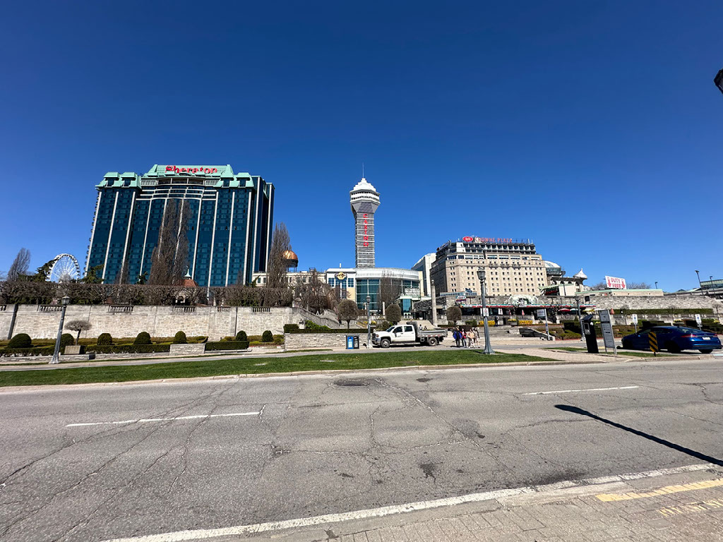 Tried in vain to get an uber from up near the duty free off-licence. I did say this town had a hint of Calais about it, and by that I meant that it was clearly an “over the border for cheap booze” place for New York state residents. The huge off licence right by the bridge over the border had signs up saying SALES ONLY TO CARS RETURNING TO THE USA. Ha. Combined with the Canadian legality of gambling, you can see why the town is like it is. The falls are a bit of a sideshow to some folk.