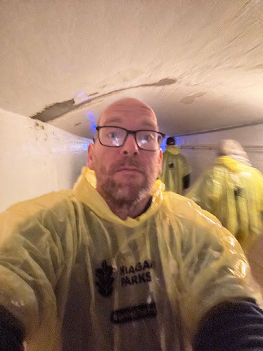 The spray is basically a cloud forming instantly, purely because of the force of the water hitting the bottom. As the pavement got low enough - but still above the top - you are walking in a cloud, permanently. And it’s so loud.