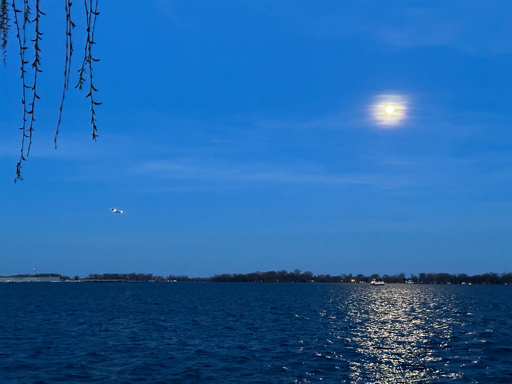 As we hugged the north side of lake Ontario in the latter part of the journey, an enormous bright moon was rising. Another mesmerising bit of nature, I decided - despite being bloody knackered - to head down to the waterfront during the dying of the light. Very, very glad I did.