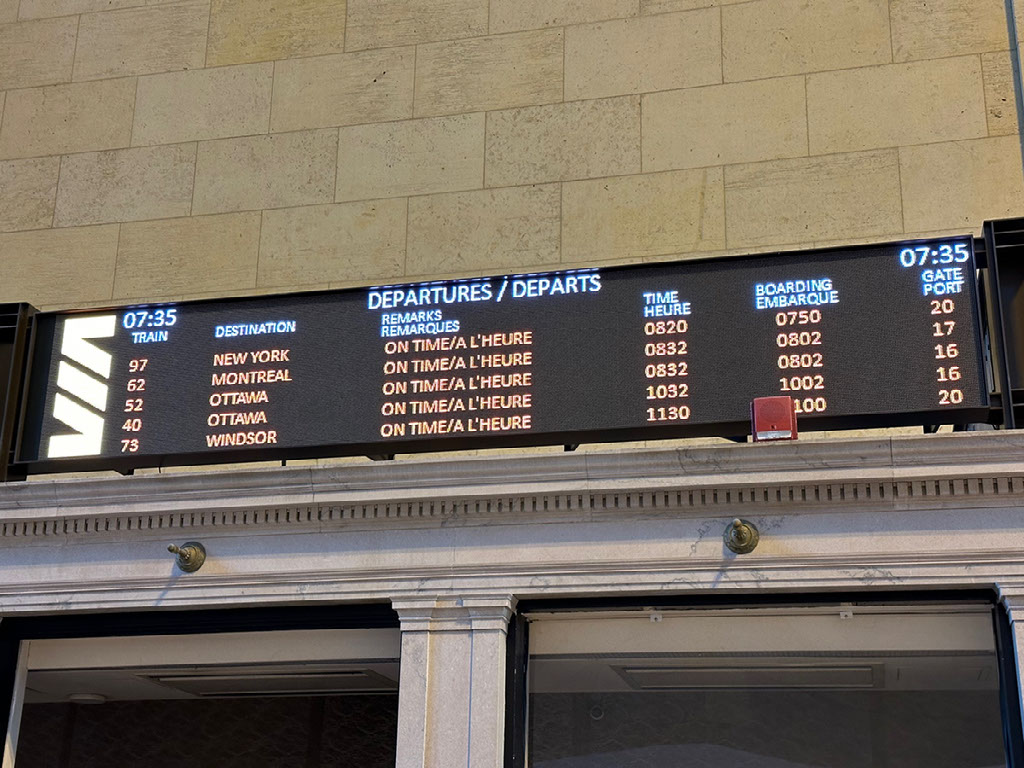 Live tracking worked on the train, which had started about 10 hours ago in NYC, and it was coming in on time. I wandered back with about an hour to spare, expecting some shenanigans based on it being the first stop in Canada. The waiting room wasn’t very busy when I arrived but ended up very crowded, especially as the train ended up being delayed - by Customs, supposedly - for 40 minutes. It was right there on the platform but we were forbidden from boarding.