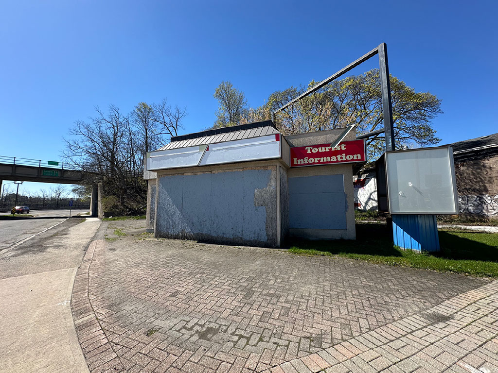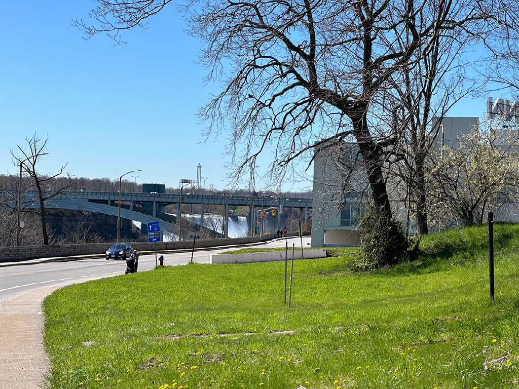Spent about, I dunno, half hour or so just generally loving the water and ambience, then decided to walk into Niagara Falls town. According to the sign outside it’s 4km, so probably about 45 minutes. According to another sign, the pavement on the side overlooking the river is “closed for the season” and you have to walk on the other side, along just the one long road full of closed B&Bs. But before any of that, back near the station, there was a tourist information office.